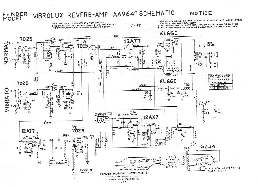 sur le schéma, dans le diviseur 1M-33K sur le 200V, j'ai remplacé la R fixe de 33k par une R fixe de 22k en série avec un trimer de 47 K. on ajuste le trimer pour avoir le signal de vibrato le plus symétrique possible et le plus sinusoïdal possible.