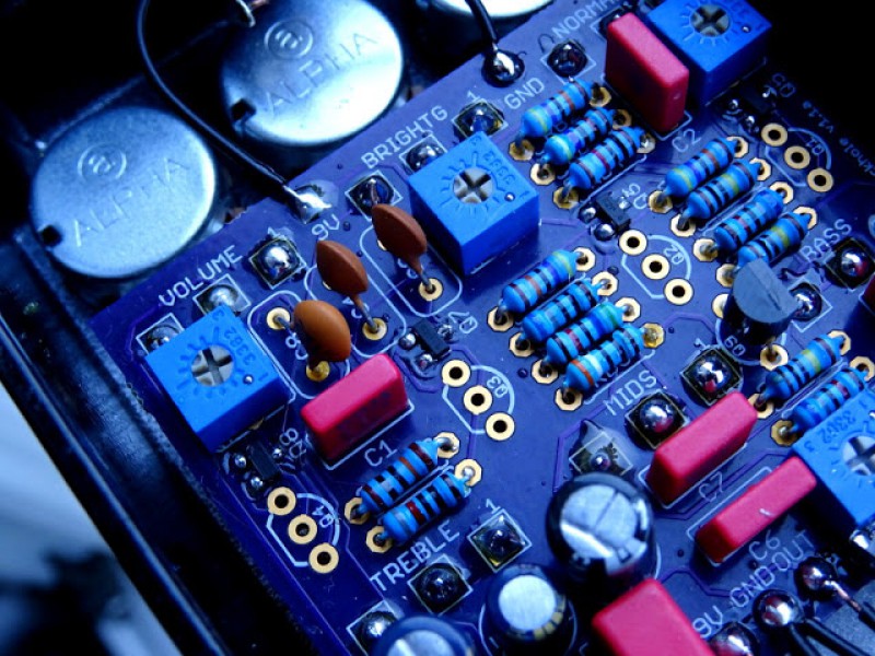 Un exemple sur une pédale (un preamp de Sunn model T sous stéroïdes) que j'ai faite il y a pas longtemps (j'ai mis la place pour les deux, les SMD et through hole):