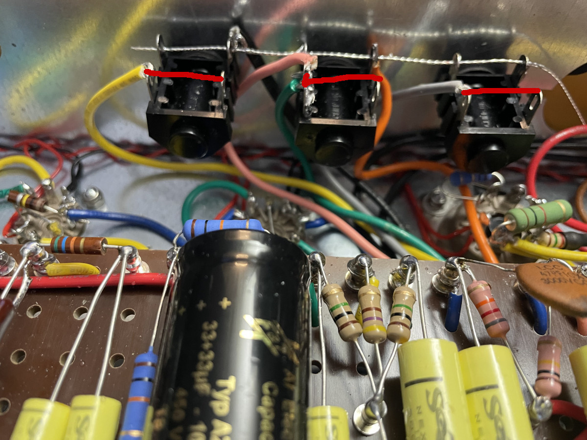 Il y a un fil noir aussi qui vient directement du potard de présence , soudé ou dessoudé, idem pas de son.