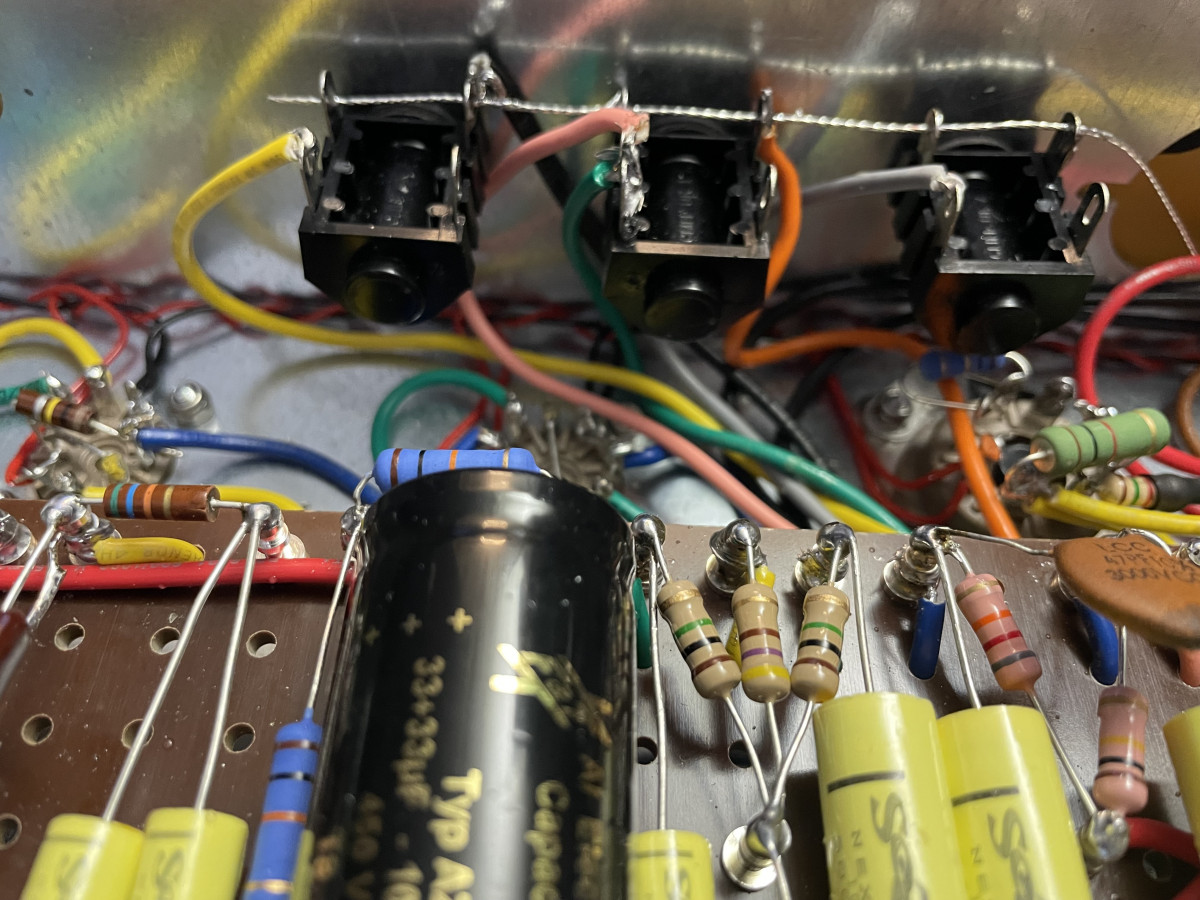 Et toujours pas de son alors que les el34 réagissent à l’attaque des cordes de la guitare (halo bleu intermittent), c’est que les entrée laissent passer du signal…