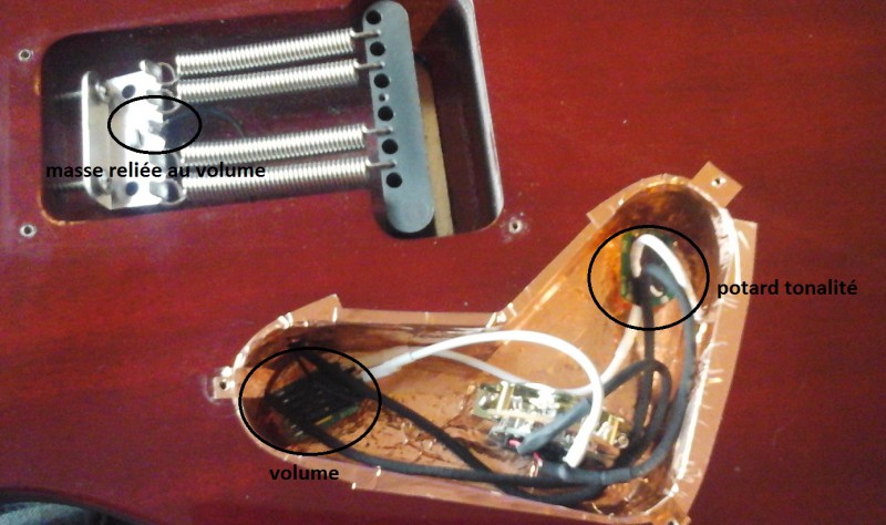Mes cordes étaient deja reliées à la masse et j'ai fait de meme depuis que j'ai tout transforme.