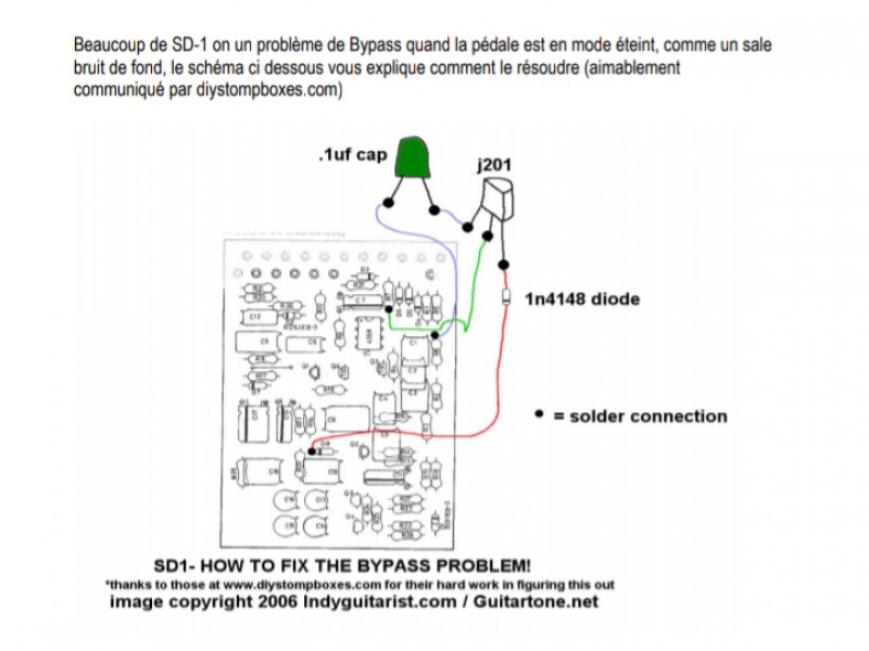Lorsque ma Boss SD-1 est bypassée, une infime partie du signal est quand même traité. Du coup je me retrouve avec la note en son clair ET en son traité (avec un volume beaucoup plus faible).
