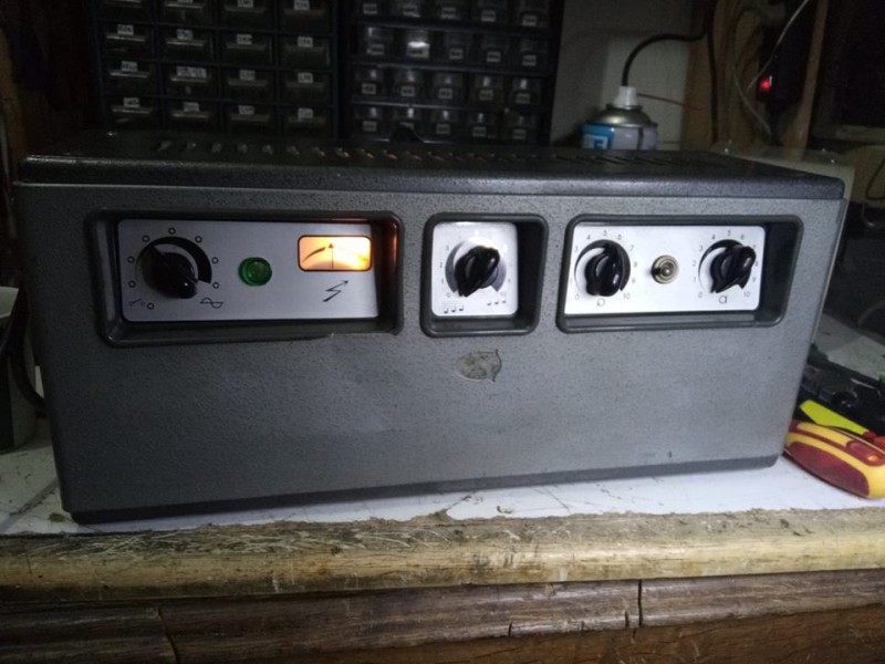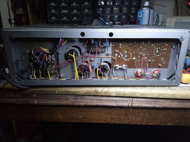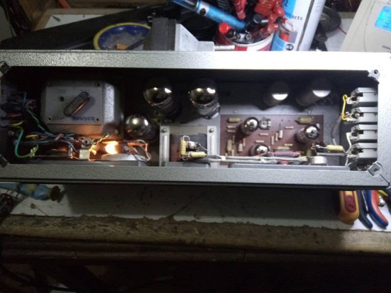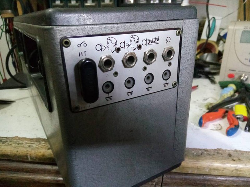 Voila ! le voici fini en modifications et restauration,je les branché sur mon cab fender d'essai en 15" ,ma télé puis electro acoustique = une tuerie !! 20 watts à Valve ,le potard de volume micro etait cassé 500k,je les pemplacé par 1M lin passe très bien ,les Dimanches à rien branler, bah voilà ,y a que comme ca qu'on apprends ...et aussi ! le plasir de pouvoir l'offrir à mon Ami Ben ,guitariste confirmé Jazz Manouche, bientot ! en outre Mer pour sa tournée