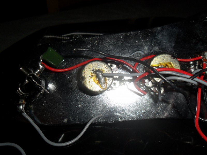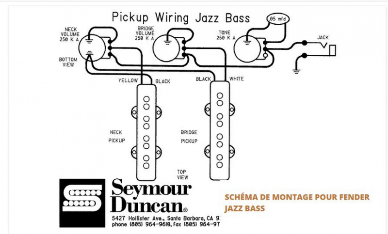 le noir c'est une masse, il va au chevalet de ta jazz. Je ne sais plus comment c' est foutu sur une jazz, tu dois avoir une petite patte metalique qui touche le chevalet, c'est là que tu dois souder ton fil noir.