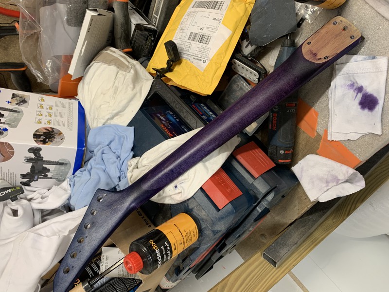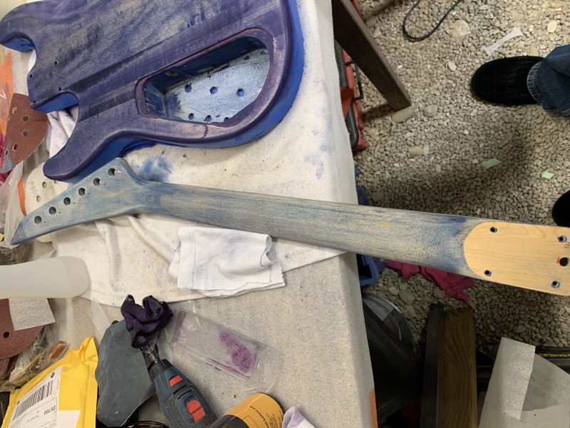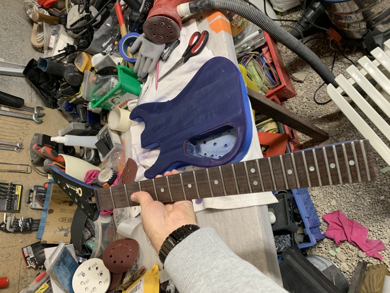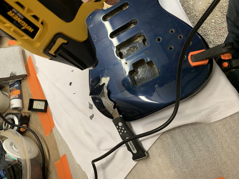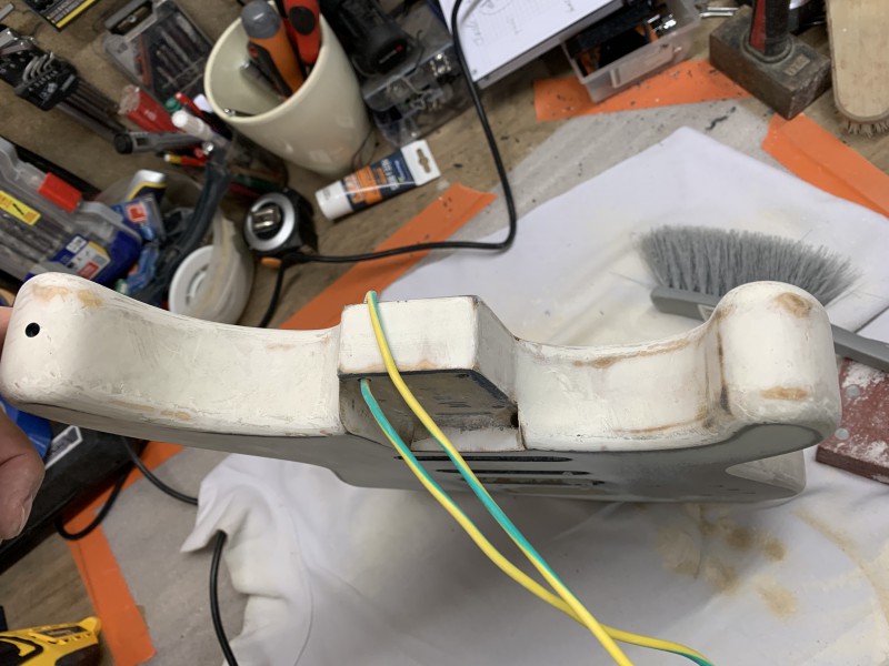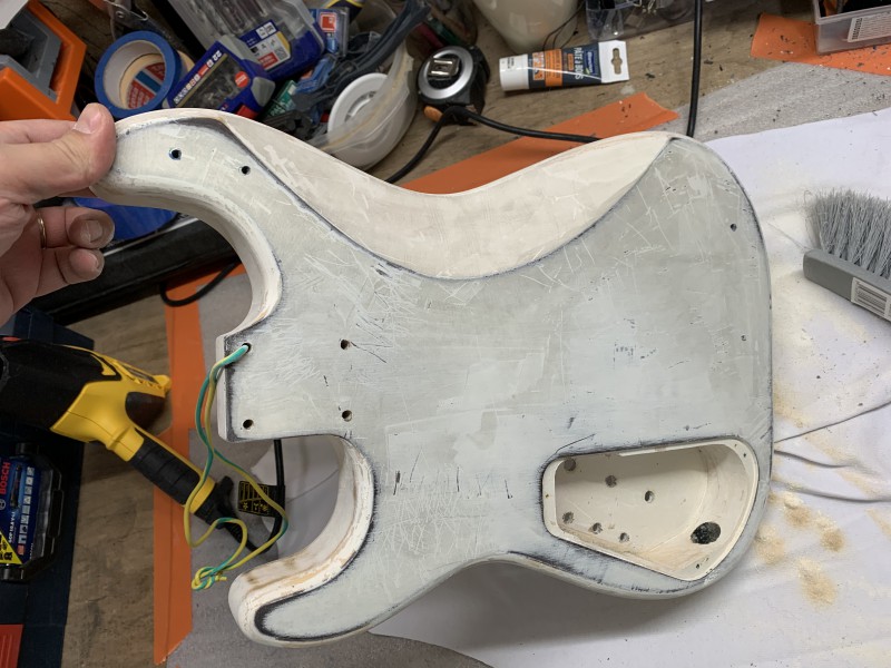 Bref, et je me retrouve avec ce truc quasi IMPOSSIBLE à poncer... que ce soit avec du grain 40 - 80 - 120 ... à la main, ce n'est même pas envisageable, mais avec la ponceuse excentrique et du grain 80... ça part doucement ....
