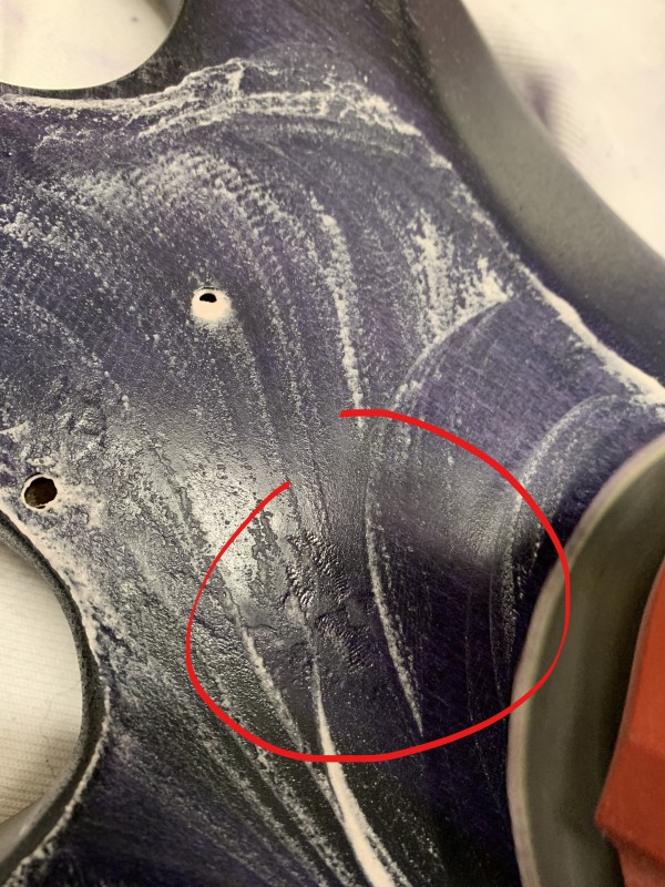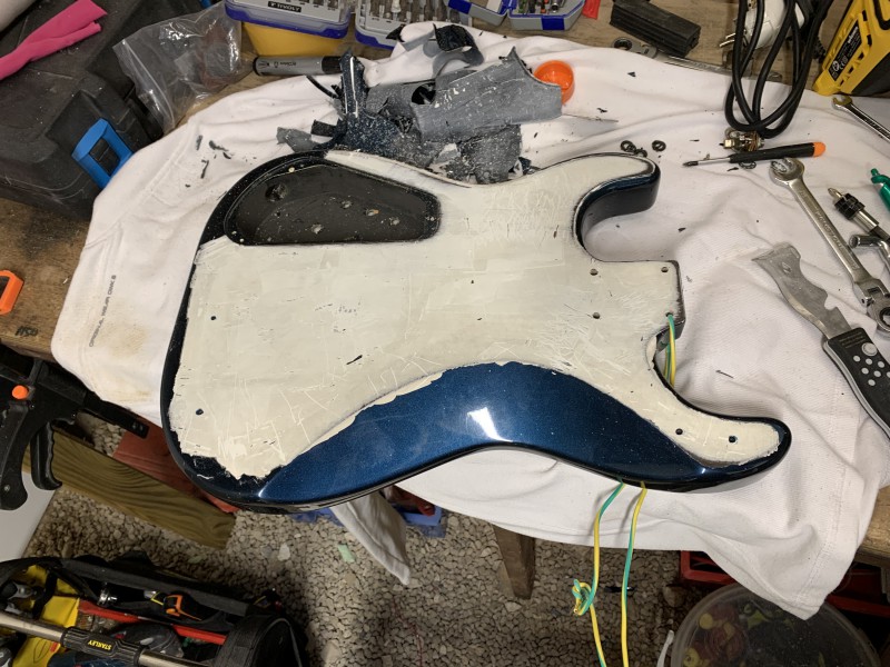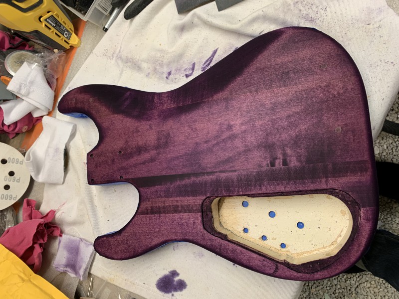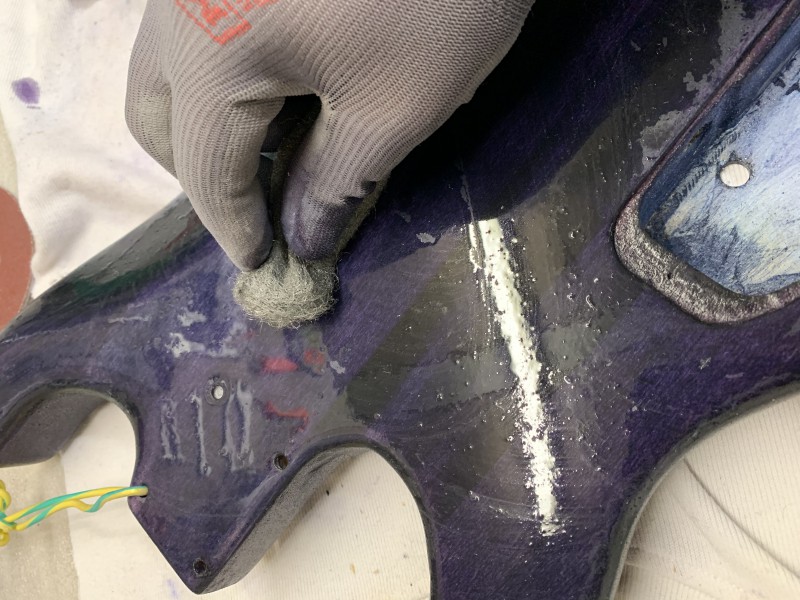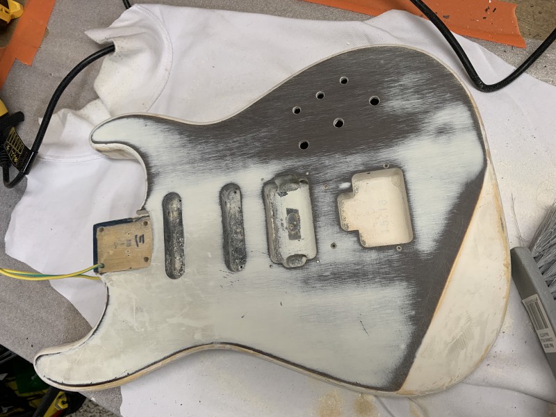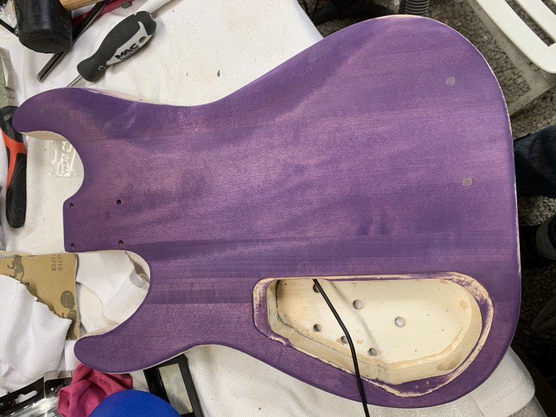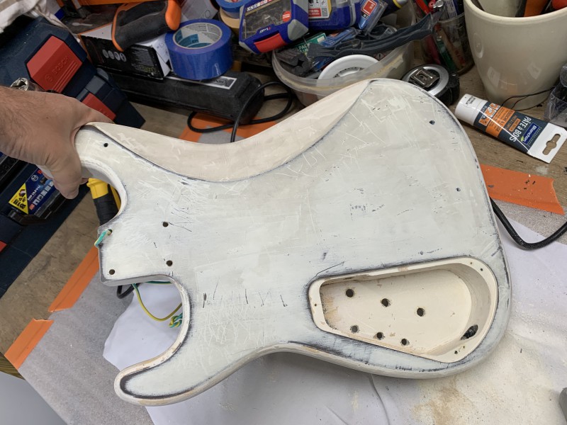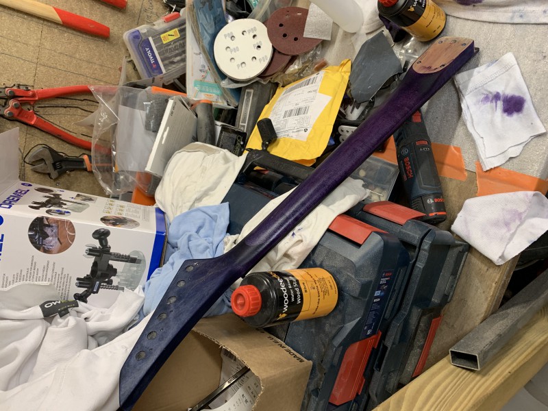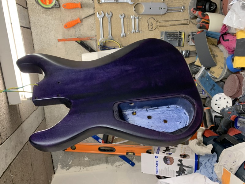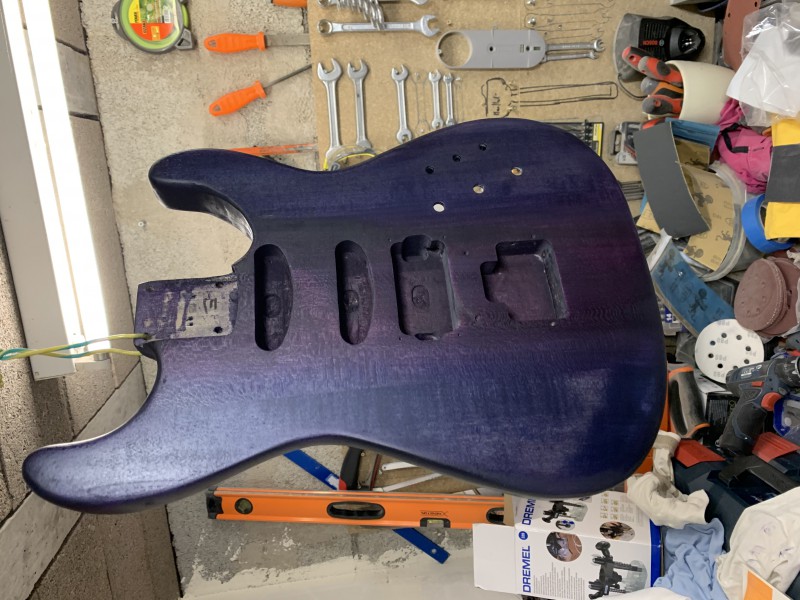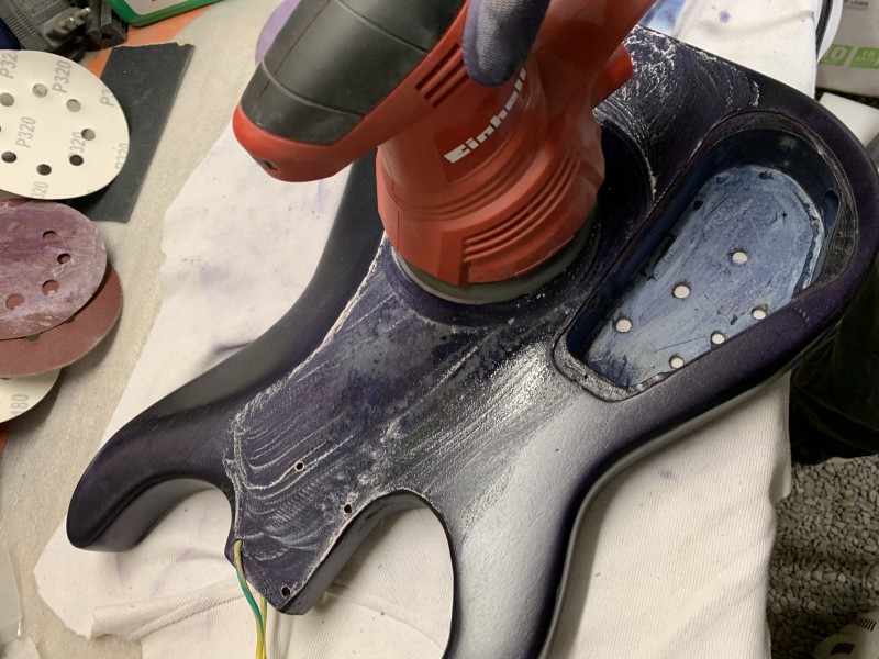 Après 1h30 à la ponceuse excentrique et 3 disques de 80 voici le back :