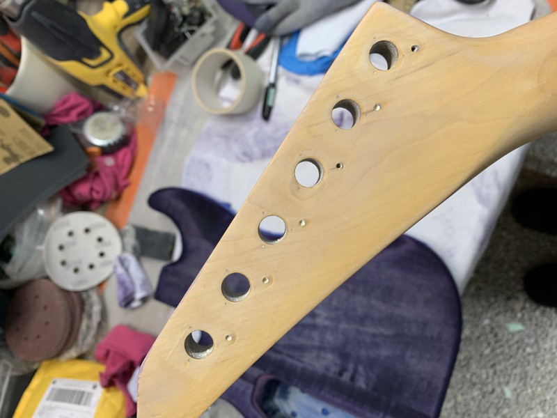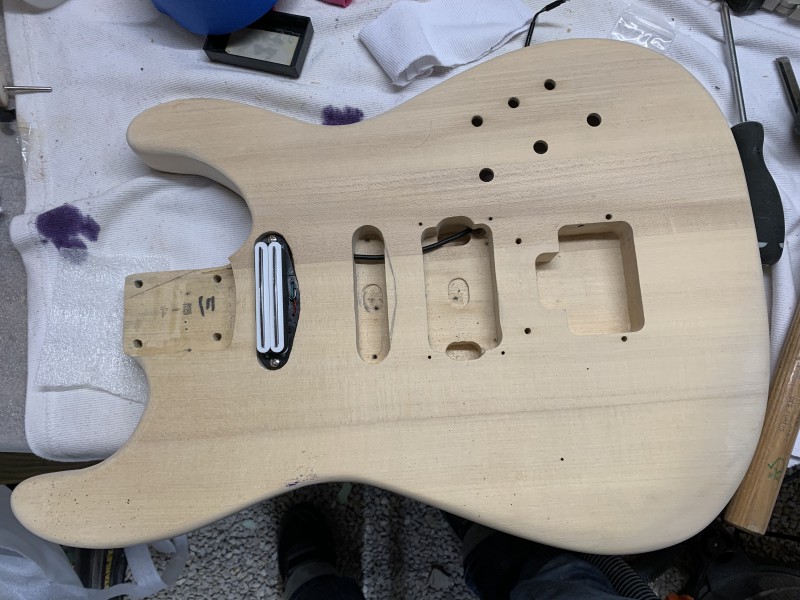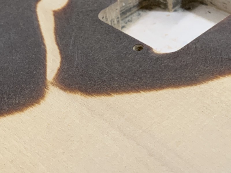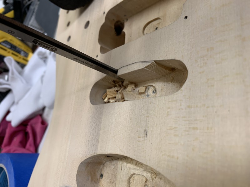 On voit bien les 4 pièces de Tilleul qui ont été assemblées pour faire le corps....