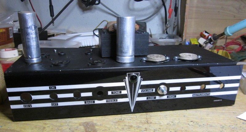 Ayant un original (mon avatar) qui sonne très bien mais montre son âge avancé et craignant pour son HP, je me suis lancé dans le clonage de ce Valco 510-1b "Suprème". C'es très proche du Supro "Suprème" qui, lui, n'a pas de tone. Beaucoup de petits amplis de cette époque sont très semblables !