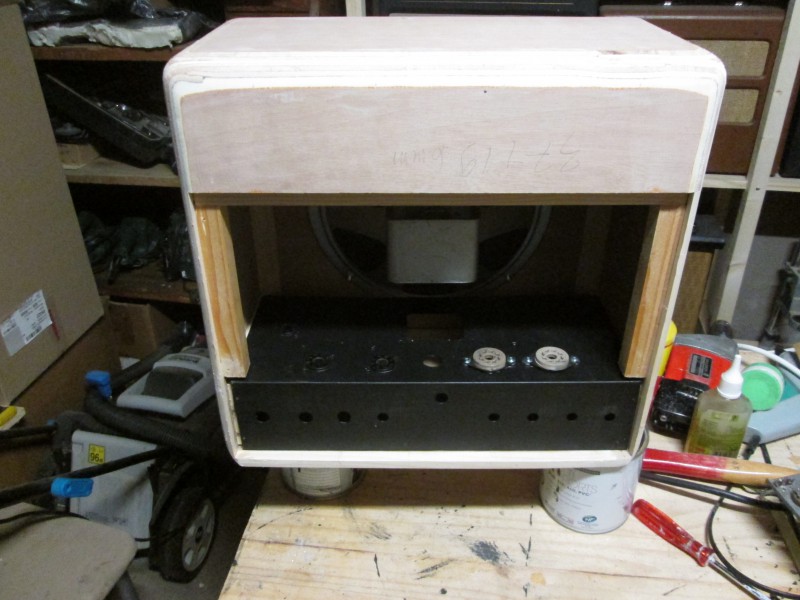 Le châssis est un morceau de tour de PC en bonne ferraille ! Les deux tubes de préamp seront montés sur "silent bloc"