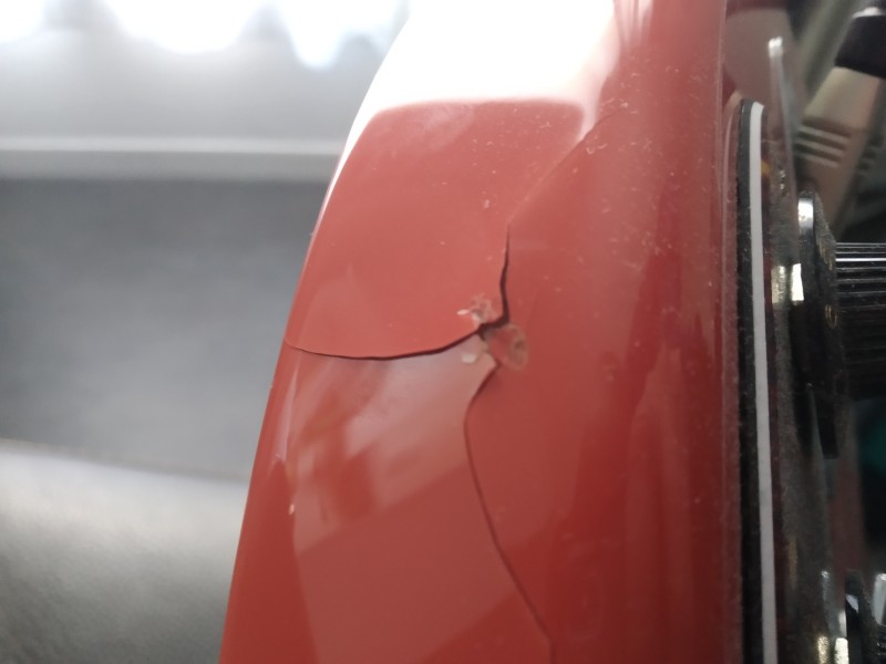 j'ai soulevé la partie la plus ouverte de la "coque" avec un trombone gentillement et j'ai glissé le bec de la colle glue et rempli jusqu'à debordement puis pour les autres parties pas soulevable avec le trombone j'ai pivoté la guitare pour faire couler la colle liquide. en appuyant sur les 3parties on voit dans les fissures la colle remonter,donc j'en ai déduis qu'elle a bien remplie la cavité.