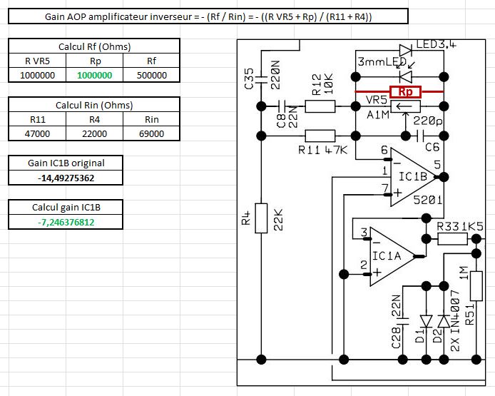 Pour calculer le gain d'IC1B j'ai procédé de la sorte :