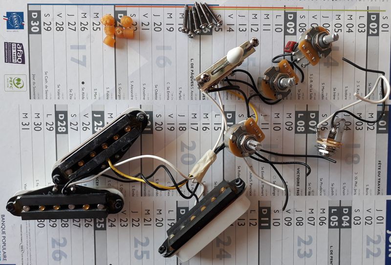 le gars est cool et ses kits sont complets : fil, 3 pot, sélectreur 5 pos, orange cap etc... il y a même du rab en visserie... 👍