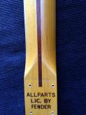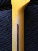 J ai fait une bonne affaire sur le net en récupérant un joli manche telecaster allparts pour pas bien cher. Le manche a été bien utilise et présente cette jolie teinte un peu jaune. Le vernis est très fin mais je ne sais pas ce que c est (nitro?)