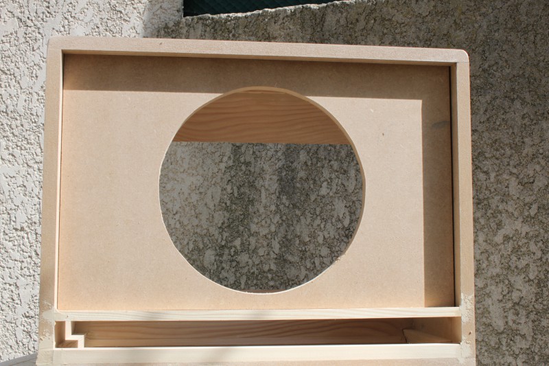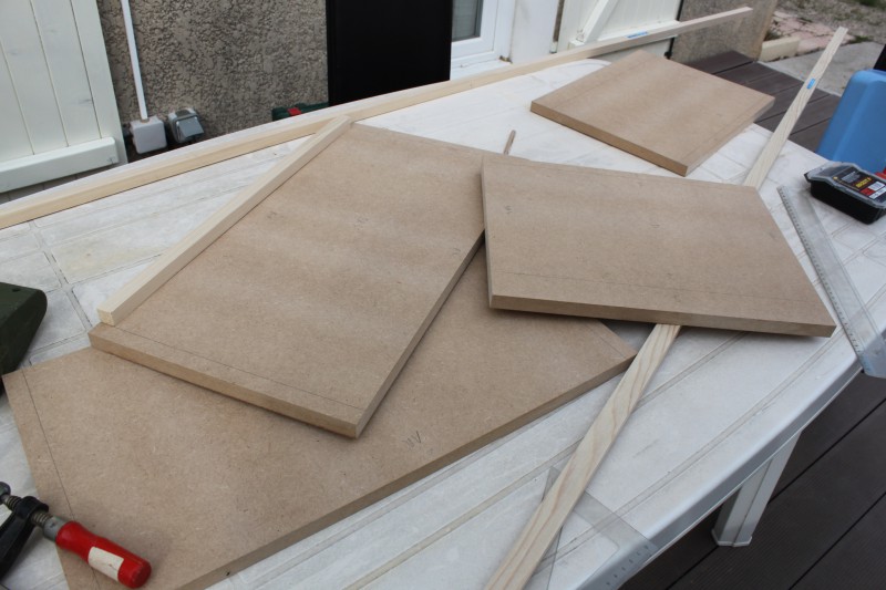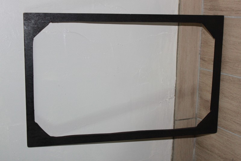 Préparation du cadre qui recevra le grillcloth. Plutot que de faire ça à partir de tasseaux, je suis parti d'une plaque de MDF (vu le prix...) que j'ai troué, au moins on est sur que c'est rigide.