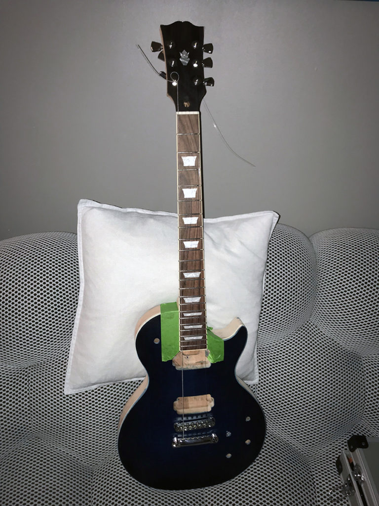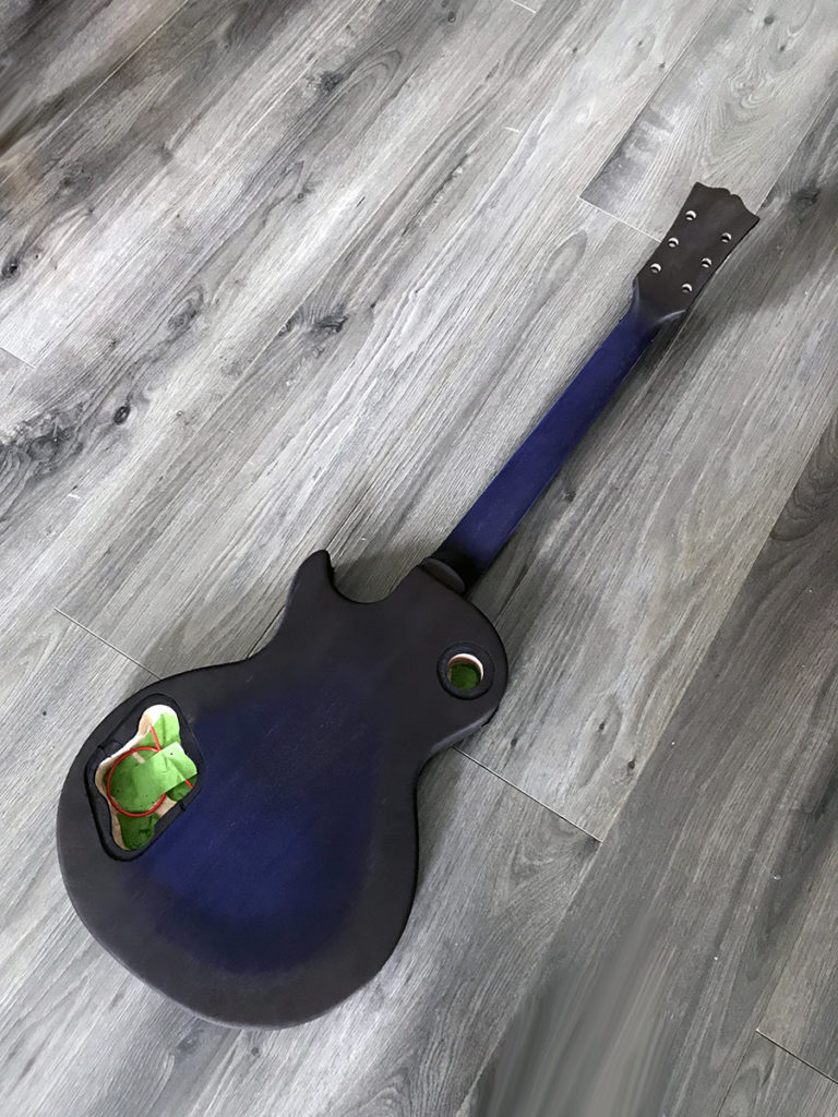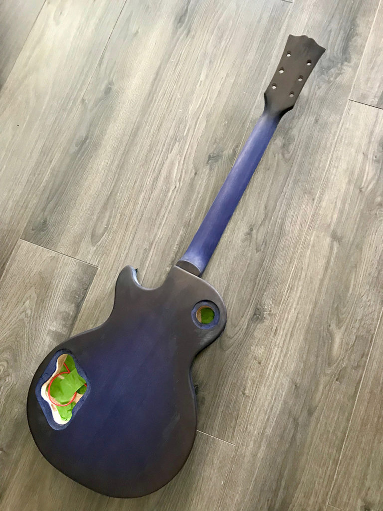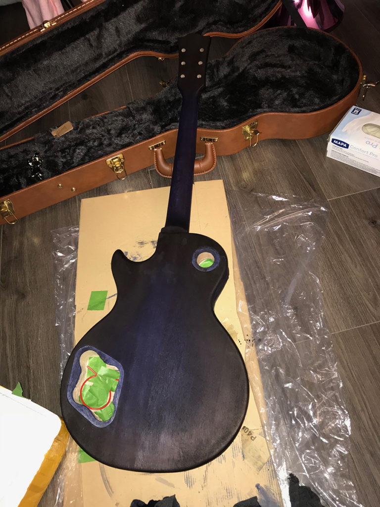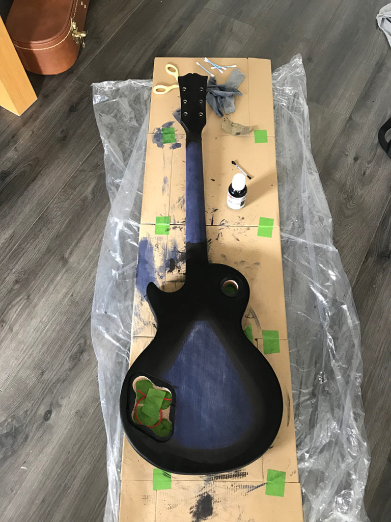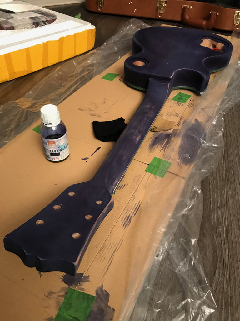 Première teinte en bleu marine partout puis ponçage au #400 :
