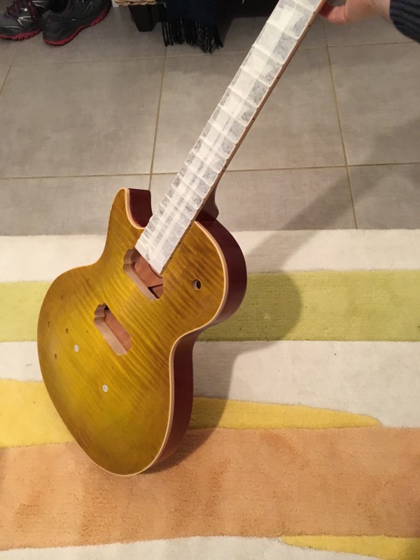 Les outils principaux hors frettage sont peu nombreux : serre joints, papier à poncer, perceuse avec quelques forets, un mètre.