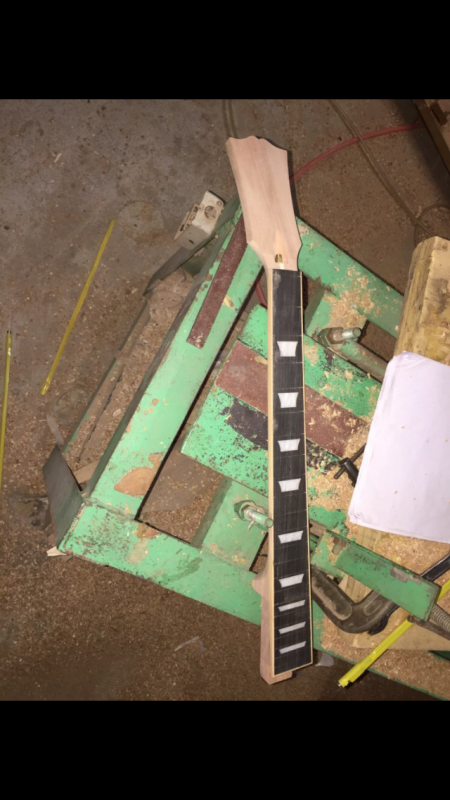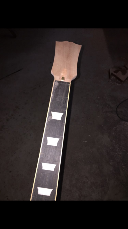 Manque le binding du corps, la defonce des humbuckers et le polissage de la touche (d’où les inlays d’aspect blanc). Demain ou après demain elle est expédiée.