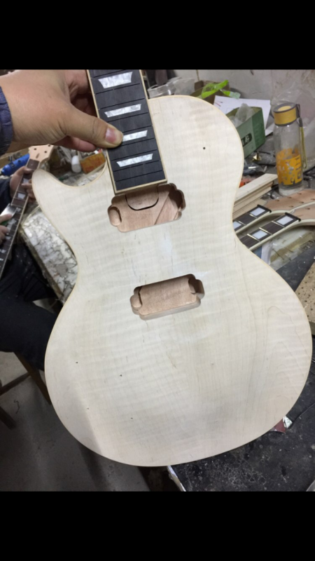 Le sillet vient d’un vendeur anglais toujours sur eBay. Les frettes de chez Philadelphia Luthier, le reste (truss rod cover, pickguard, pickup rings, plaque de jack, poker chip, strap locks, backplates) de chez ADP Guitar Shop en Bretagne.