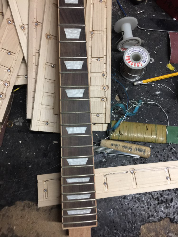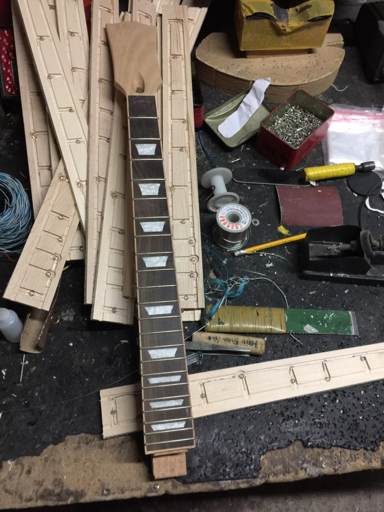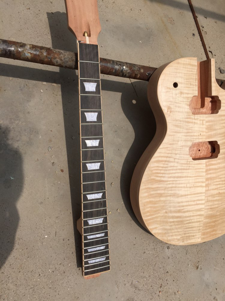 Autant commencer un nouveau topic pour cette deuxième guitare, avec les photos des pièces du kit customisée avec :
