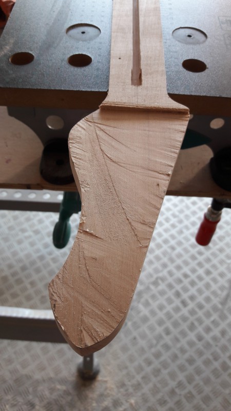 Finitions : Corps (face avant uniquement) et tête (face uniquement) teintés bleu + finition TrueOil et le reste en naturel finition TrueOil……….. (enfin c’est toujours l’idée de base pour l’instant)