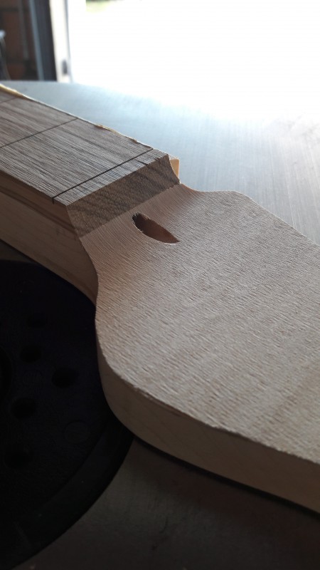 Touche en Zebrano, diapason : 650mm, avec une forme de manche entre Télécaster et Vigier Excalibur