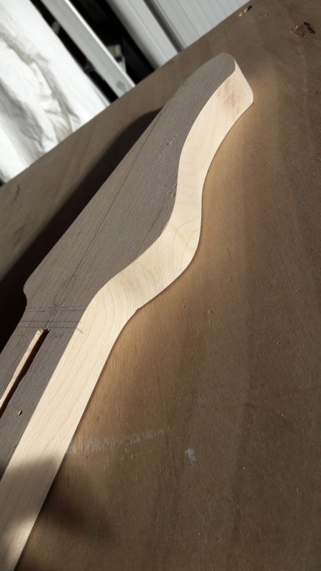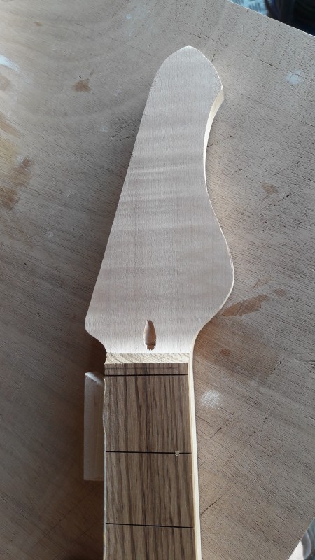 Manche : Erable, base de Télécaster avec dessin de la tête personnalisé (inspiration d’une tête Crimson Guitar) – radius 12’