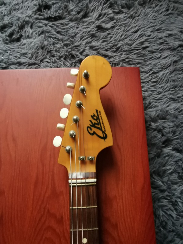 C'est une électrique de la marque Eko, mais je n'ai aucune idée du modèle précis...