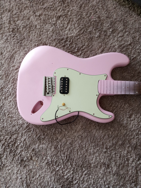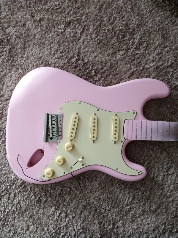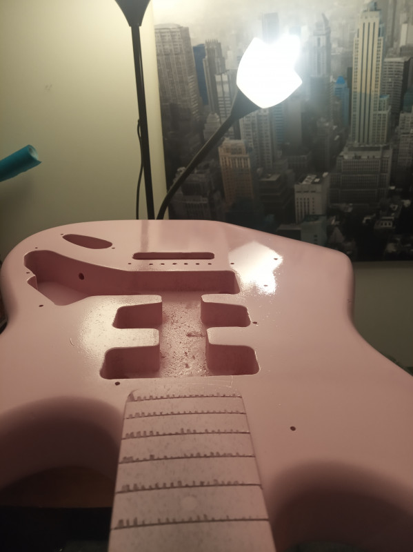 Le manche commandé sur Aliexpress, radius 9.5 avec soit disant un vernis nitro....le sillet est trop haut comme toujours chez Ali et j'ai oublié d'en commander un nouveau