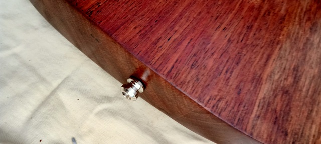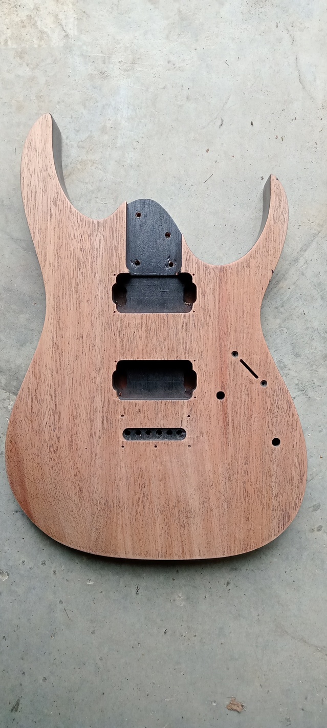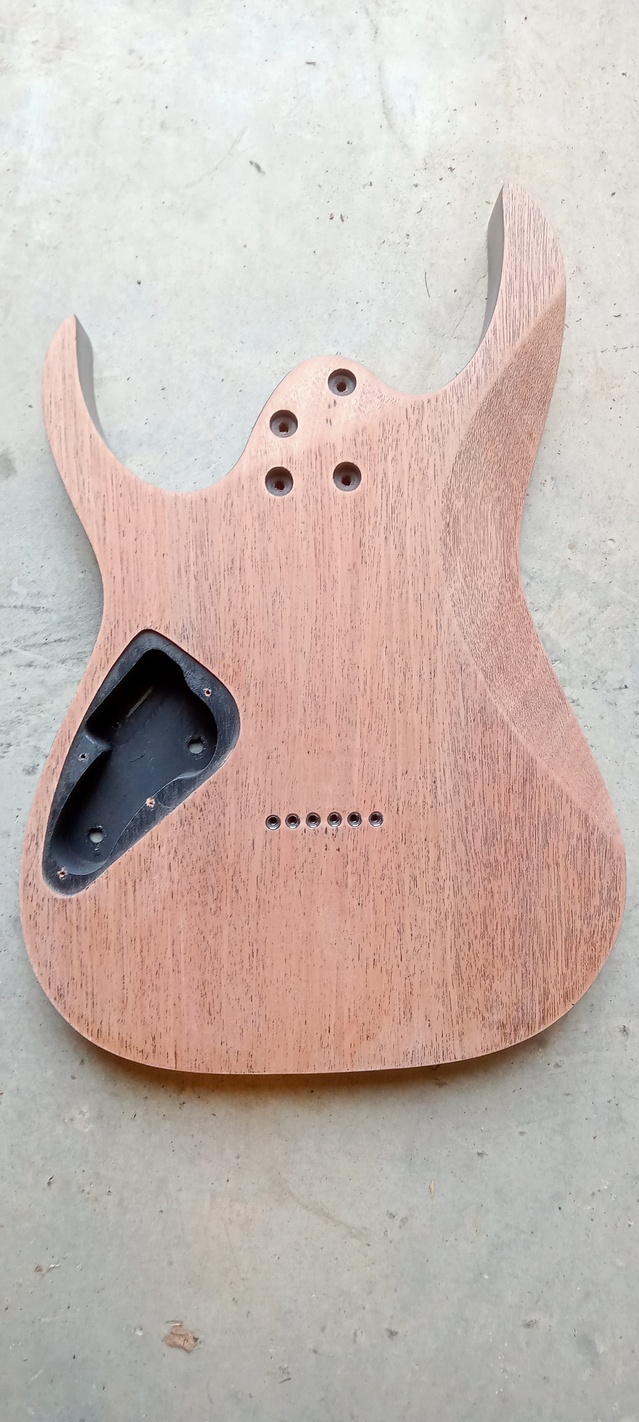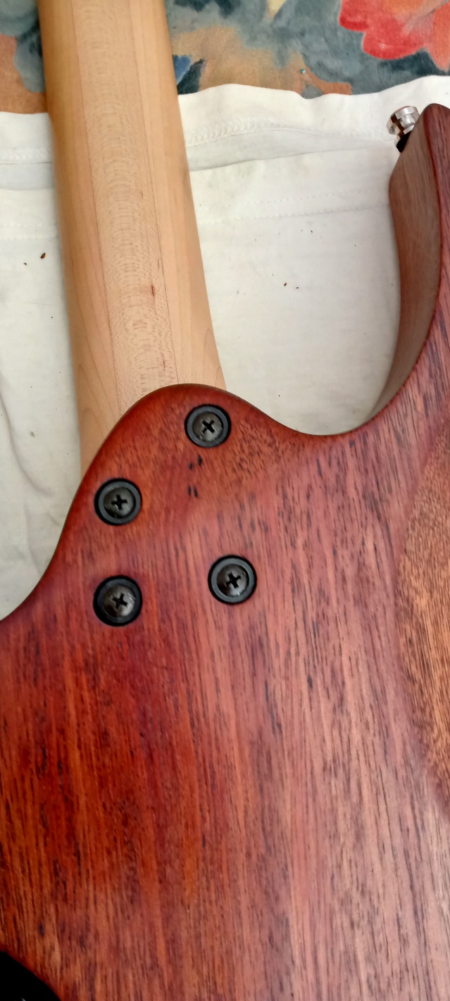 Première impression, ça sonne très bien. Beaucoup de sustain et de dynamique mais aussi un son d'une grande richesse harmonique sans perdre en clarté ni en définition. J'aime beaucoup le grain que j'obtiens dans l'association de cette lutherie avec les SP Custom Origin 59'. Ils sont vraiment très bons ces micros. Ils apportent aussi un petit "grains" sonore dans la réponse des médiums qui donne une très très belle personnalité au son et que je trouve très inspirant ! Mais pour les avoir testés avant sur une autre lutherie en tilleul, ici j'entends bien clairement l'apport de l'acajou dans le caractère sonore. Le chevalet-cordier de type hardtail influe beaucoup positivement sur le sustain.
