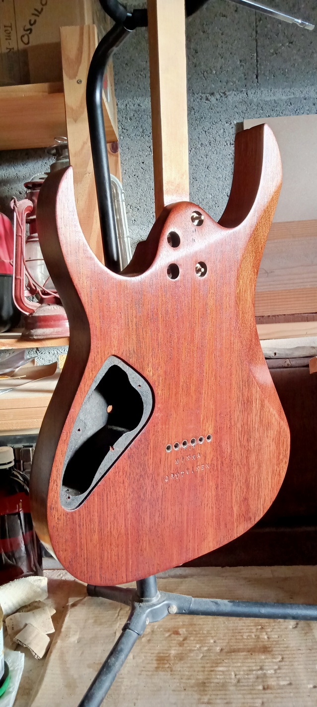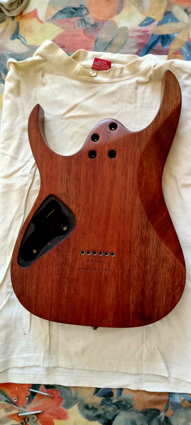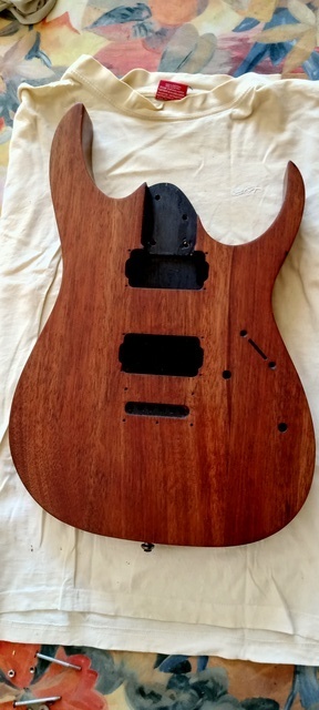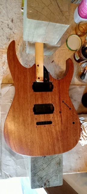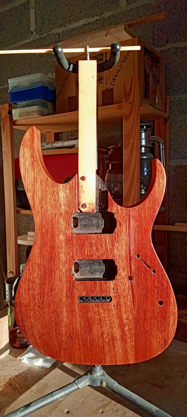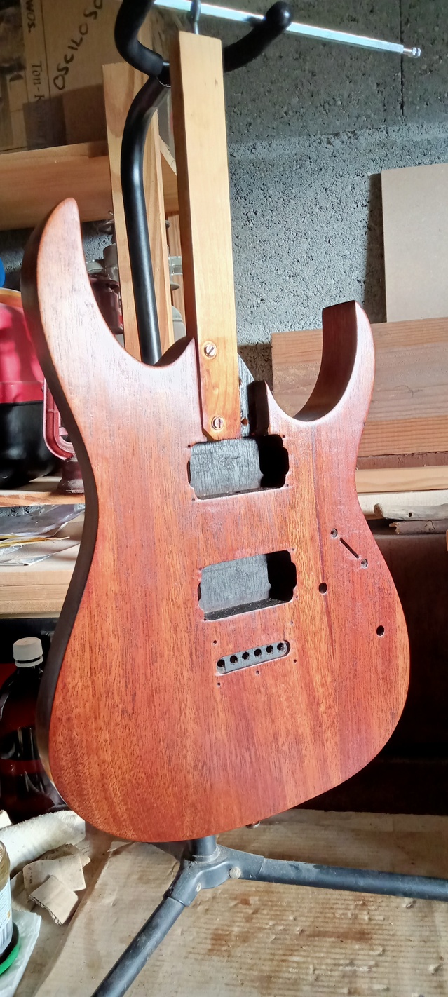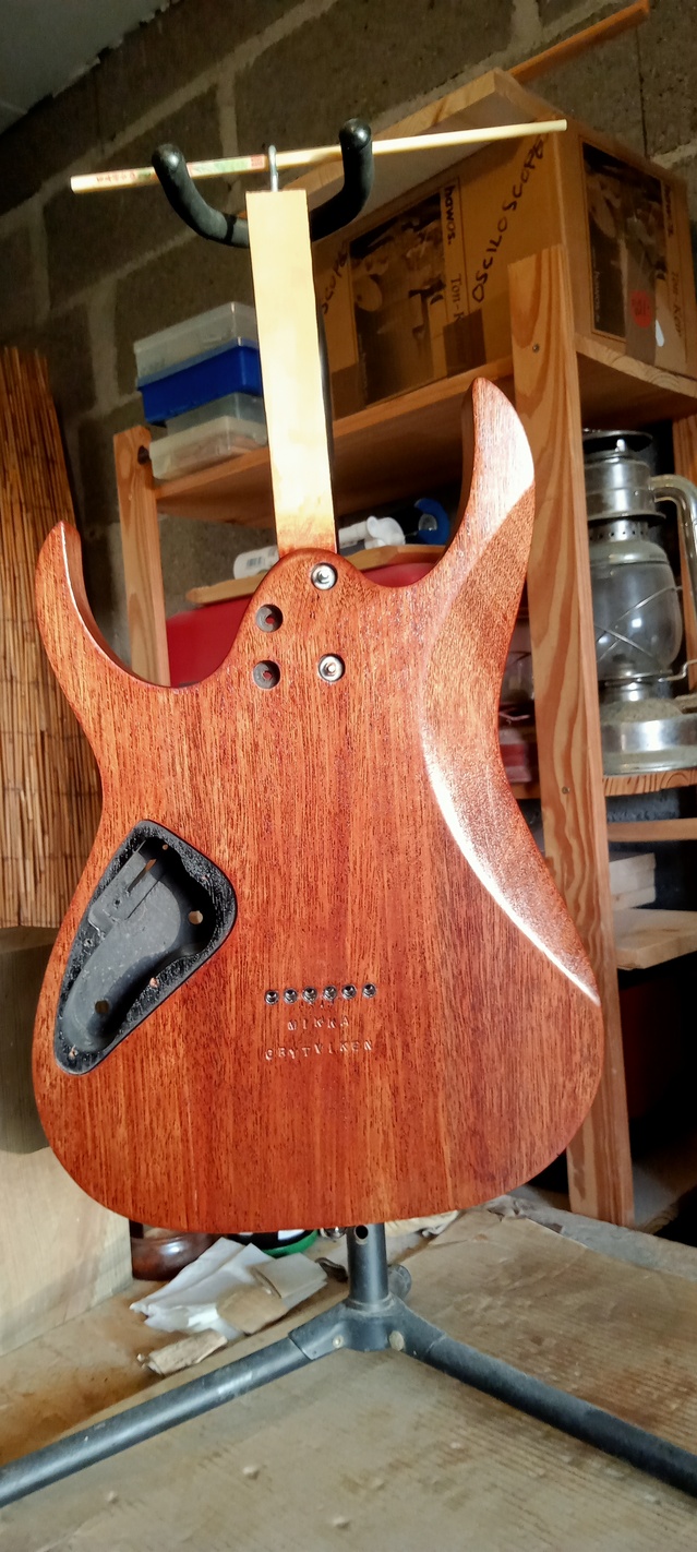 Entre le début du démontage et ponça de la guitare et la finalisation ça m'a pris un petit peu plus de quatre mois ...