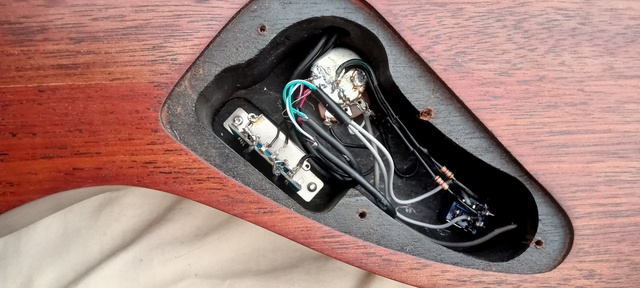 J'ai donc installé deux SP Custom Origin 59' avec un splitt mais régulé avec deux résistances individuelles de 1k8 pour chaque micro afin de se rapprocher au mieux du son d'un single coil de type Stratocaster. Ca marche plutôt bien.