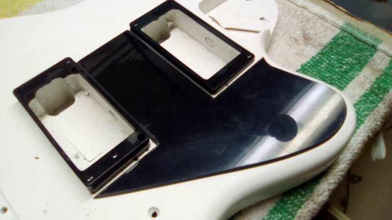 Vu que je suis en pleine phase de changement de micros, je vais transplanter les EMG de ma Roxanne Master sur cette Ibanez, et je vais profiter de tout cela pour lui offrir une nouvelle finition.