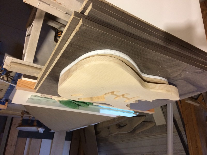 Je pense teinter le frêne couleur foncée style merisier l érable en bleu turquoise encre colorex et quart de rond sur l érable une fois teinter pour faire un liserais blanc apres c est dans ma tête le faire c est d autre chose . C est le travail de la semaine à venir 😊