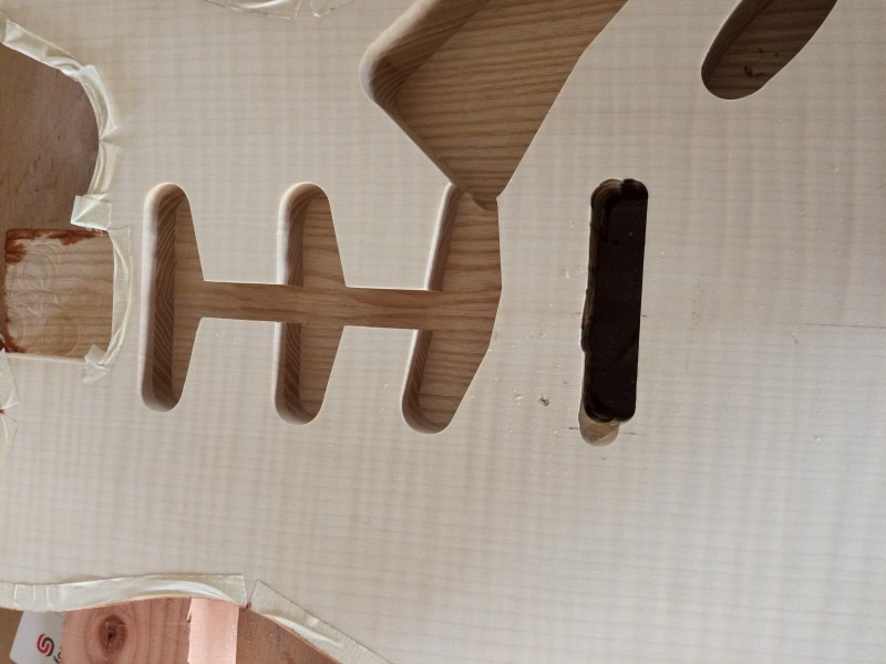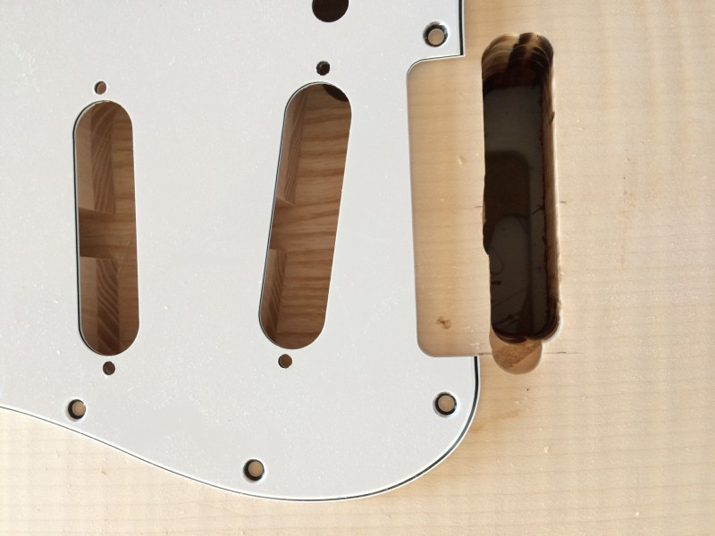 Tu trace le pourtour du carré,tu mesure son épaisseur,et là,( à la défonceuse) tu vas retiré l’épaisseur de bois,le carré sera inclus dans le corps = aucune gêne mécanique ,car heureusement ce n'ais pas de l'aulne,le frene est bien plus dur ,donc pas de souci ... et esthetique,prise en main garanties pour les solos !!!si tu ésite amène moi ta gratte