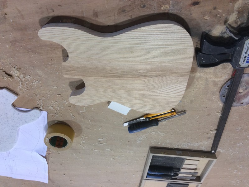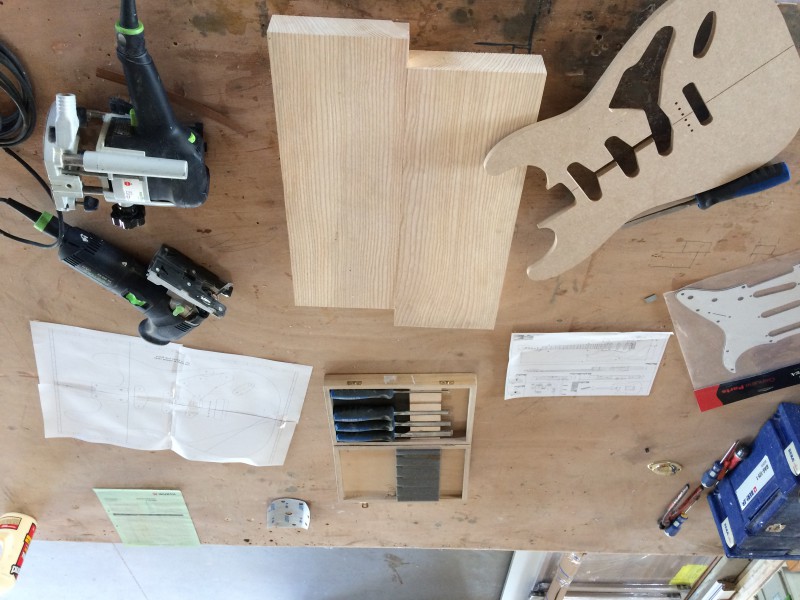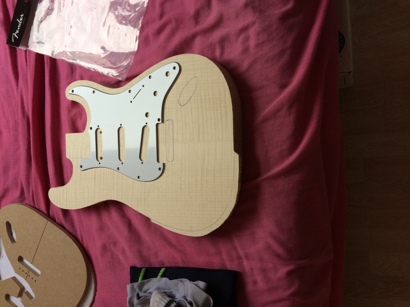 8 / ton trais d'axe sur le corps te donne le milieu rapportant sur ton chevalet en Y milieu de visse  et X  entre D et G ,là tu peux présenter le pickguard pour te guider