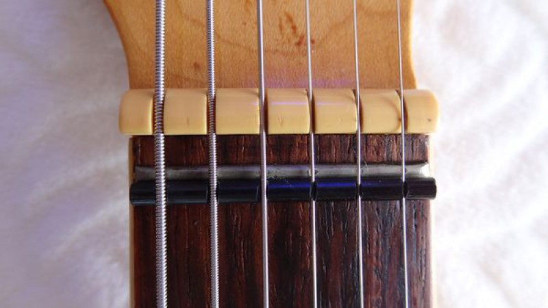 la frette artificielle reste bien en place de manière étonnante, probablement sous la pression des cordes et bien bloquée contre la frette zéro