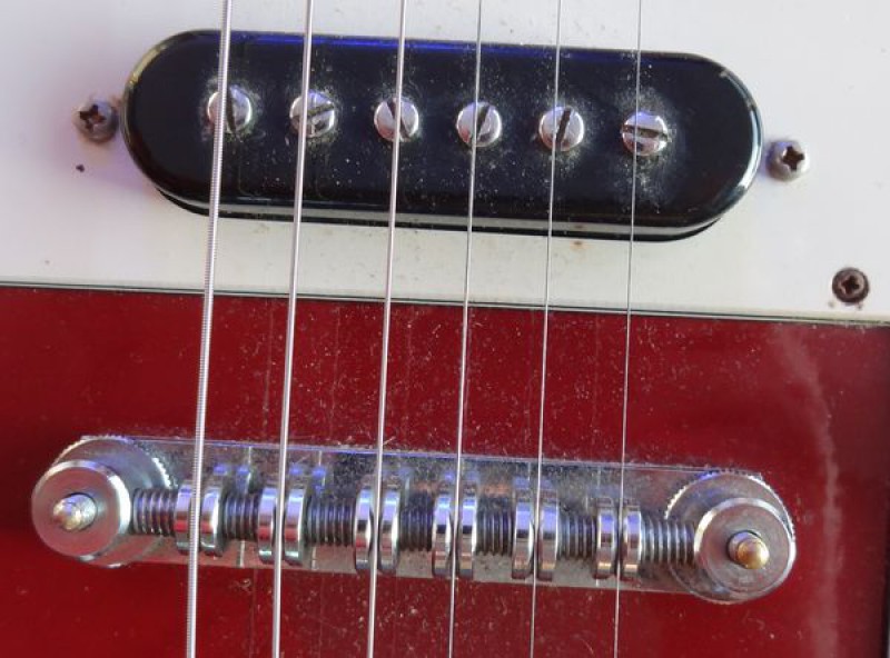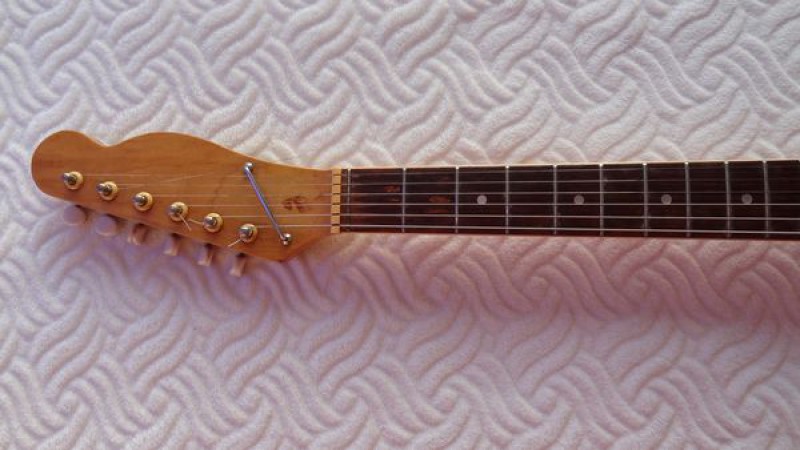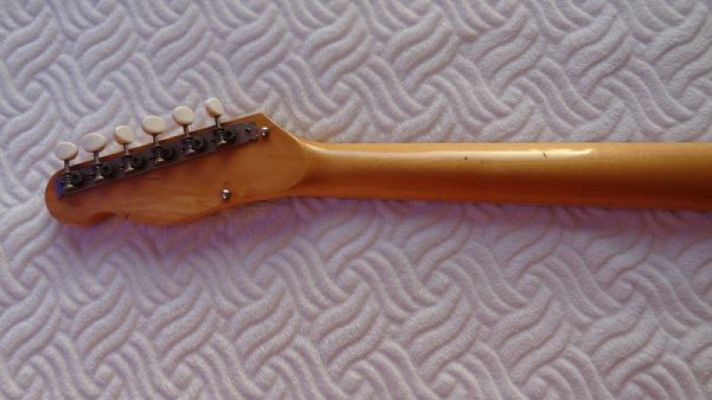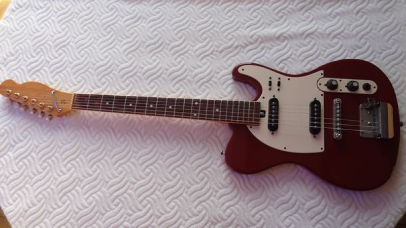 Bon, ce qui est certain c'est que c'est une copie de Telecaster avec vibrato en CTP, très légère et plutôt réussie, comme l'étaient ces guitares économiques à l'époque : simples et efficaces.