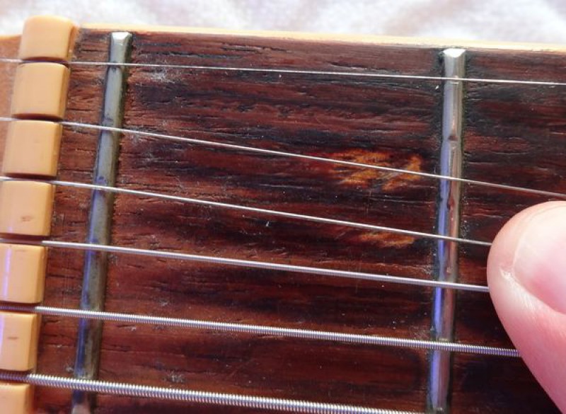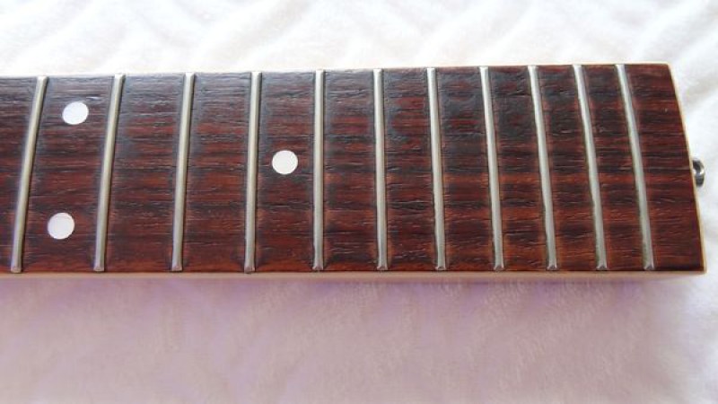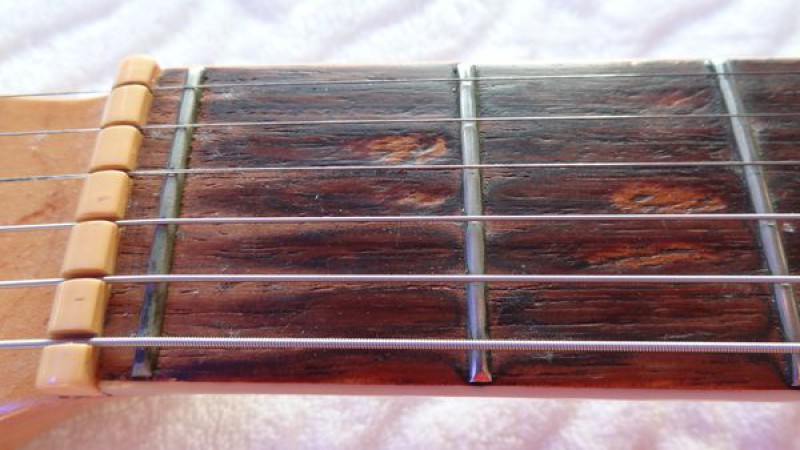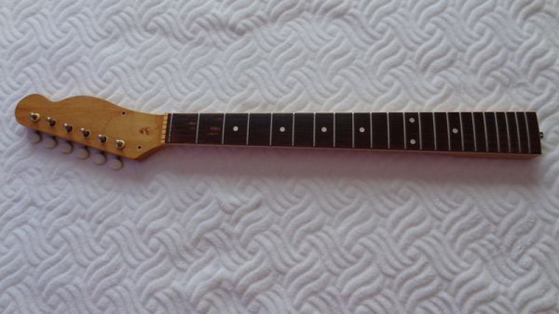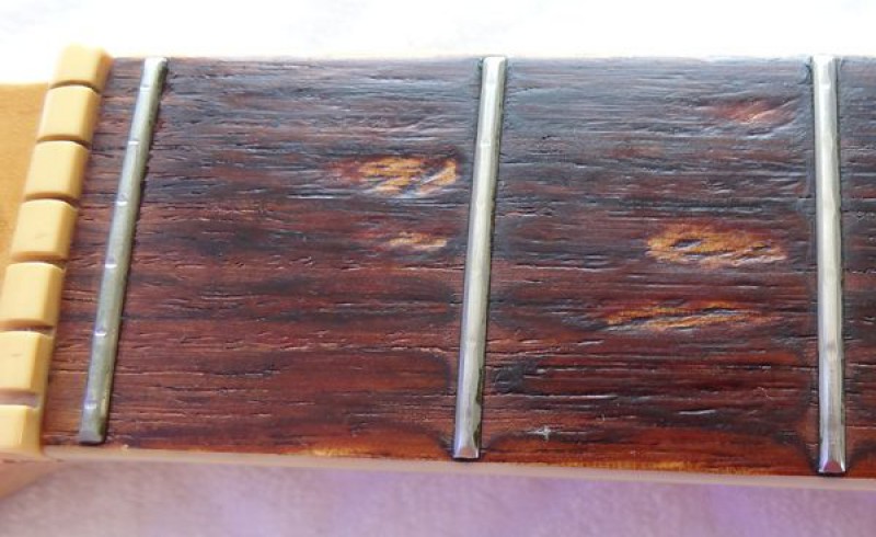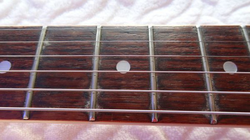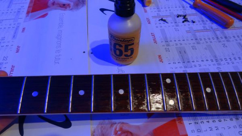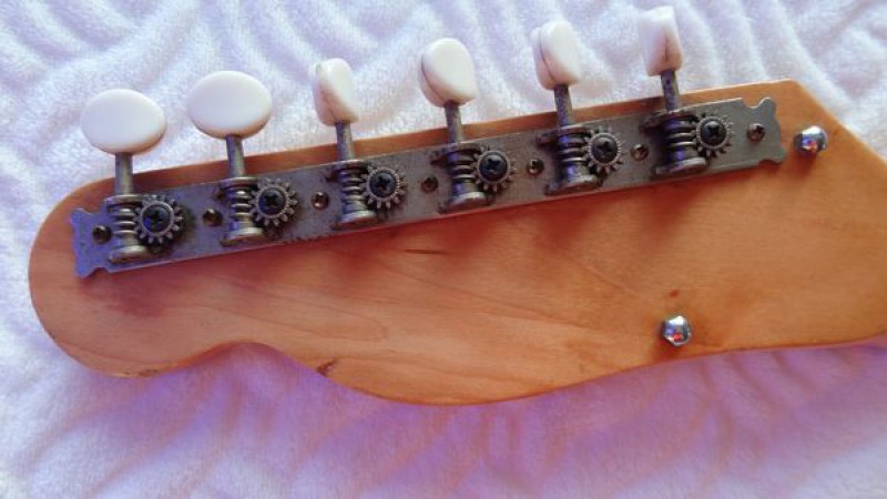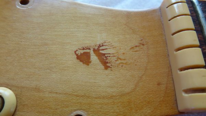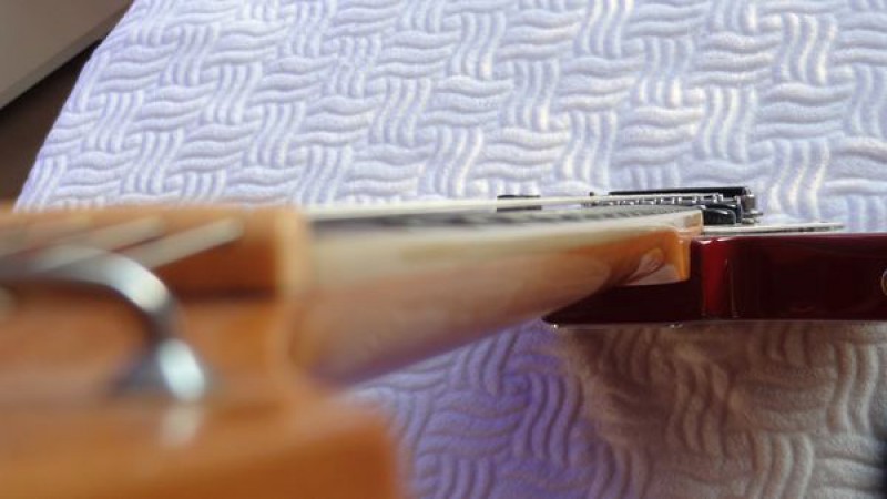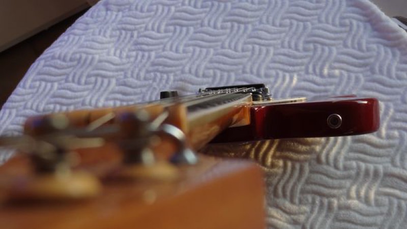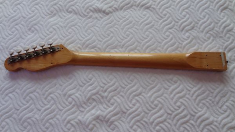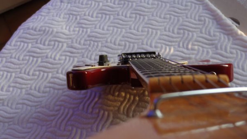 La belle a probablement été fabriquée dans la seconde moitié de la décennie 1960, elle a donc désormais environ 50 ans et a plutôt très bien vieilli au fil du temps, bien qu'elle ait été énormément jouée par ses précédents propriétaires, en atteste l'usure des frettes et de la touche.