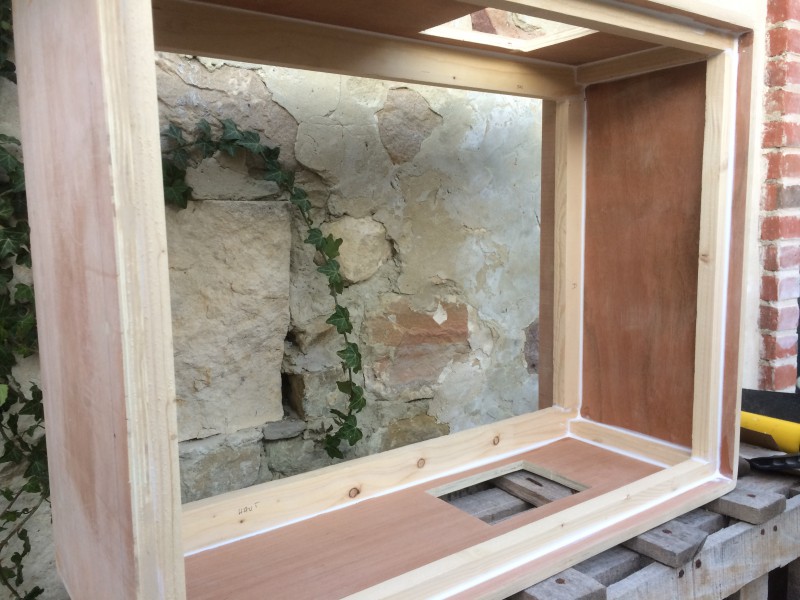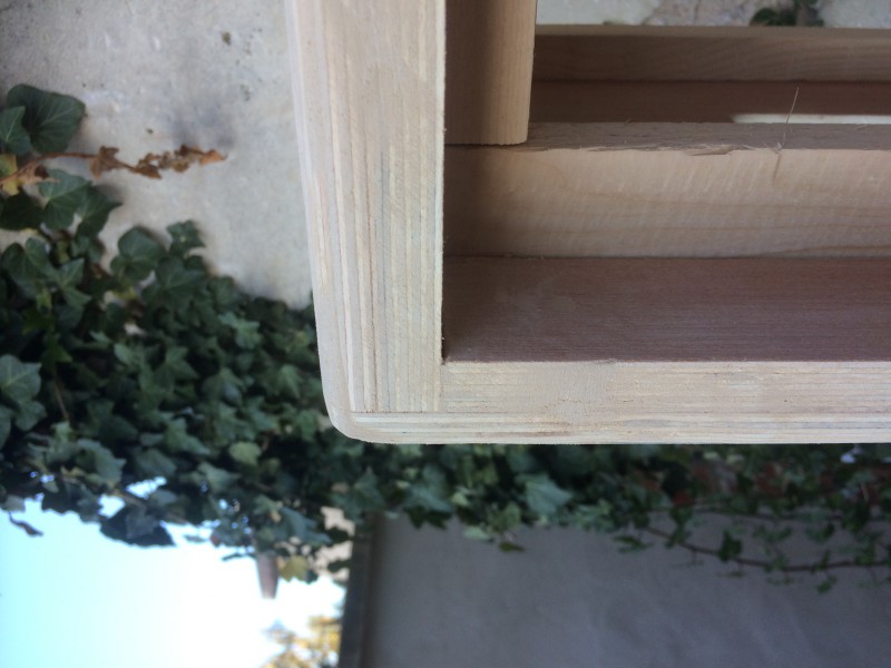 J'ai utilisé de la colle à bois pour l'assemblage avec tasseaux de pin, et des visses pour maintenir le temps de la prise