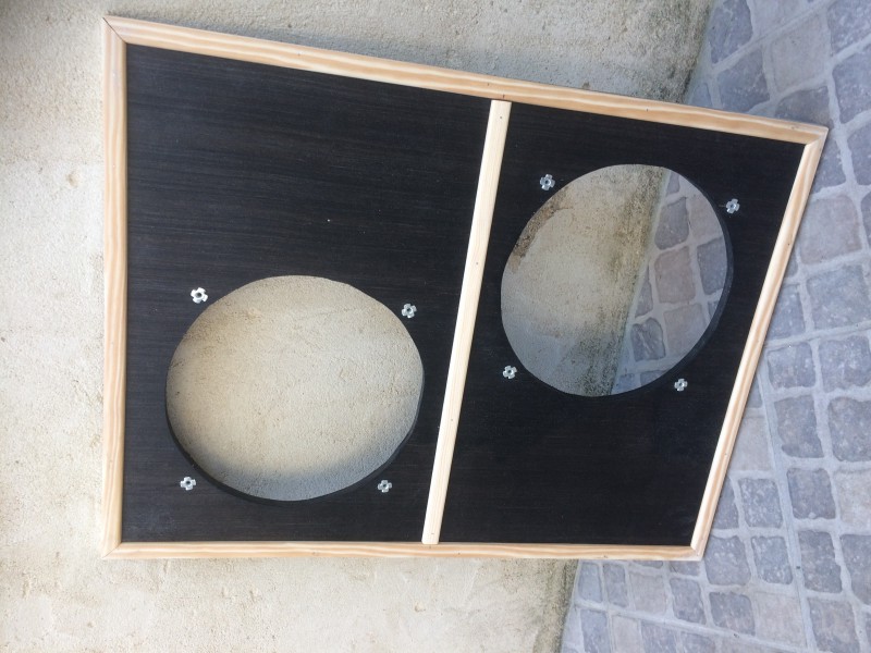 je suis parti sur une configuration verticale, avec montage des HP en diagonale afin de rester dans des proportions et un poids acceptables