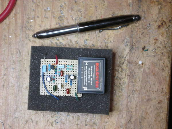 le petit circuit de reverb, sur veroboard, est fixé dans l'espace vide sur la plaque principale.