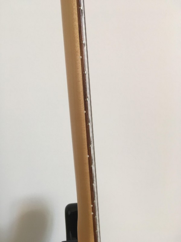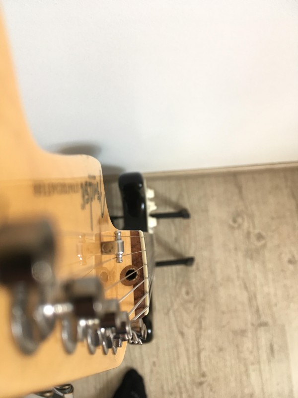 Après l'avoir amenée au mag' ou je fais régler mes guitares, au moment de la récuperer, gros pincement au cœur : le technicien m'annonce que le trussroad ne peut être régler comme il faut car l'empreinte a été forcée et rendu HS...