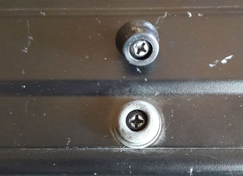 Changement des patins raclés par le bitume (ceux du milieu un par un, ils maintiennent une tole de renfort)