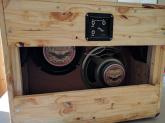 Il est monté avec des HP WGS 8 ohms. un reaper 50 et un invader, soit 100 watts en 16 ohms.