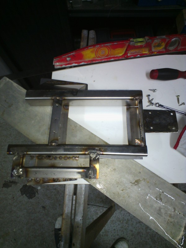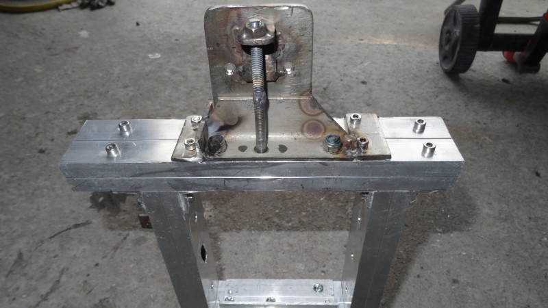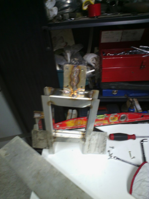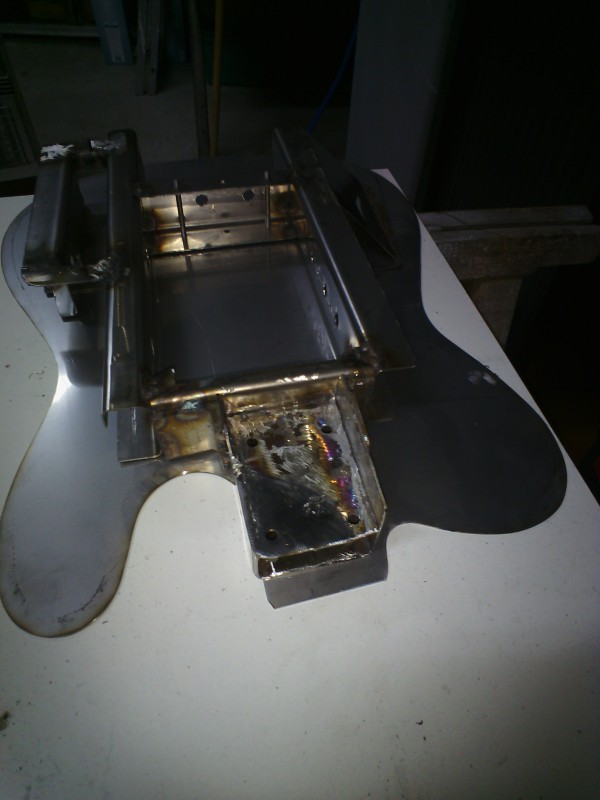 Pour la rigidité, pas de problème du tout, le talon du manche est fait d'une tôle un peu plus épaisse (3mm), que j'ai percé pour souder 4 écrous de 5mm, mis 4 vis noyées dedans de manière à pouvoir régler la hauteur et le parallélisme avec la table, et de les garder en appui aussi pour rigidifier justement, puis le tout mis en place et soudé sur l'eclisse, pratiquement uniquement en haut du corps du coup, comme tu peux voir sur les photos.