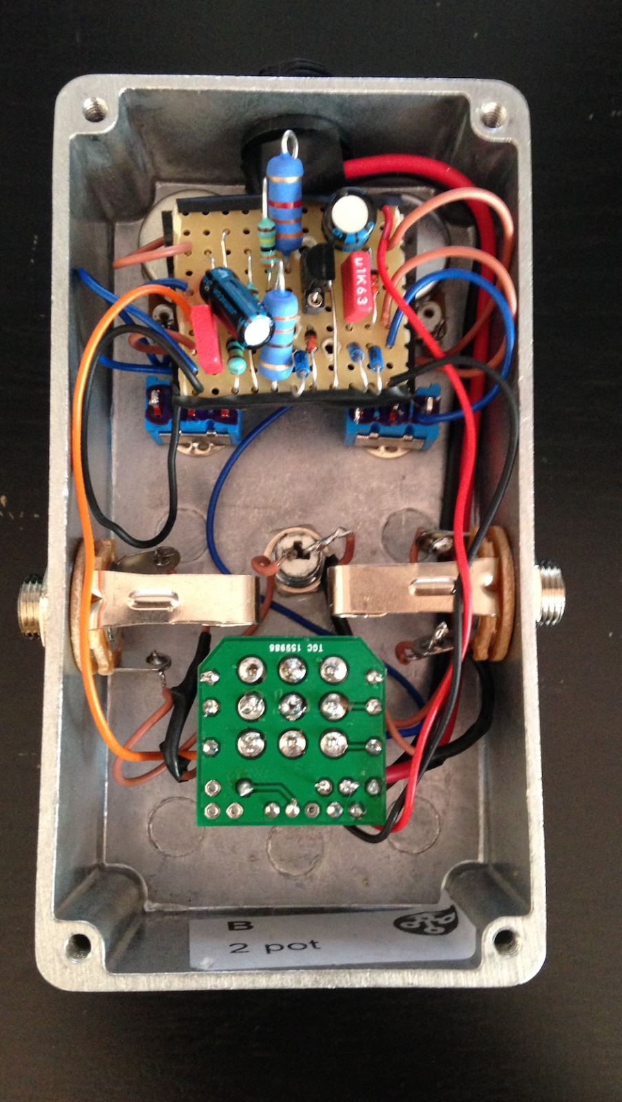 Première pédale construite sans kit donc, et tout s'est bien passé ! Elle s'est allumée du premier coup (à part la Led que j'avais branchée à l'envers), et elle sonne super bien ! J'avais eu la Les Lius, que j'adorais, mais celle-ci me semble plus "organique" et bien plus polyvalente !