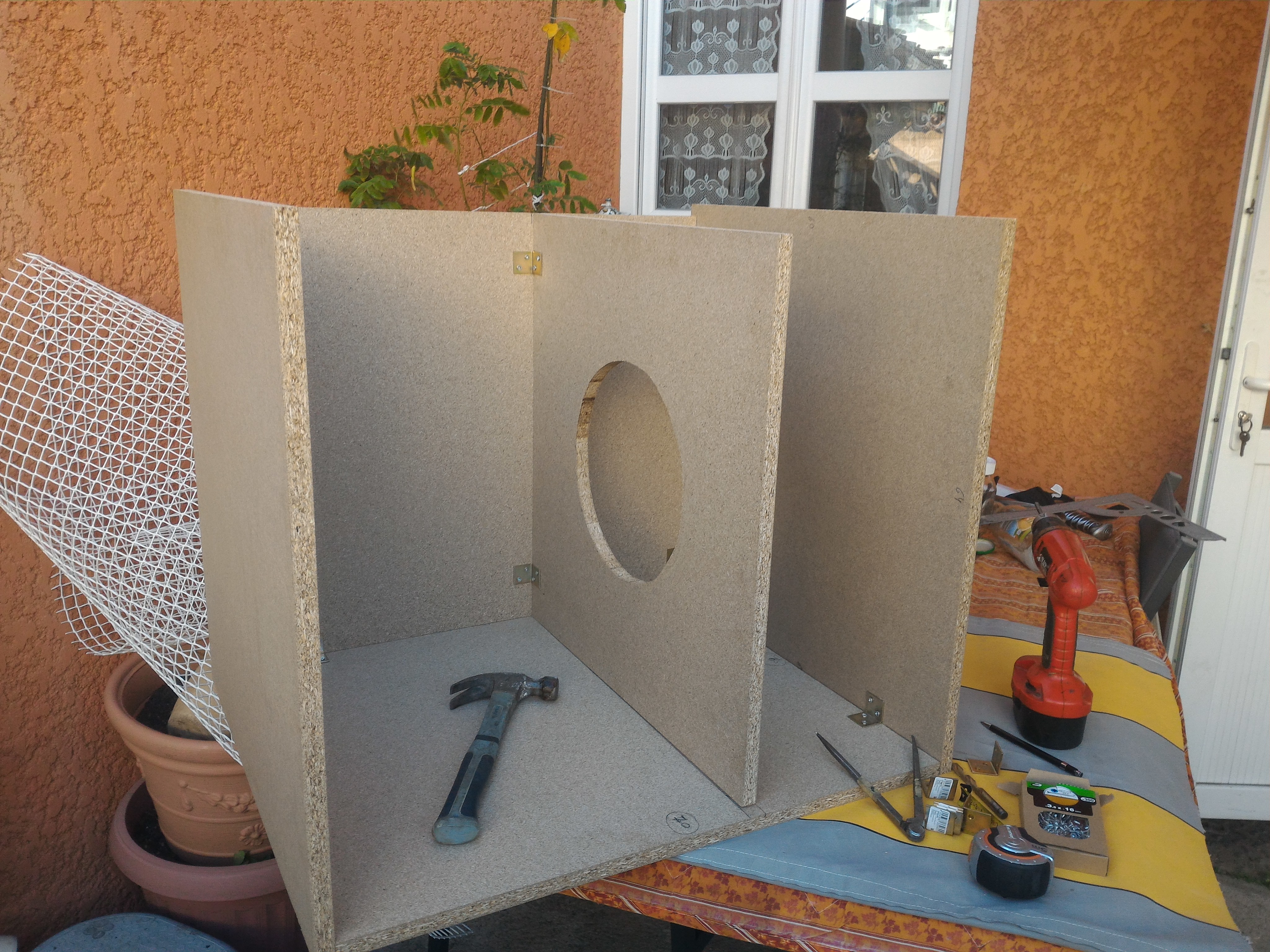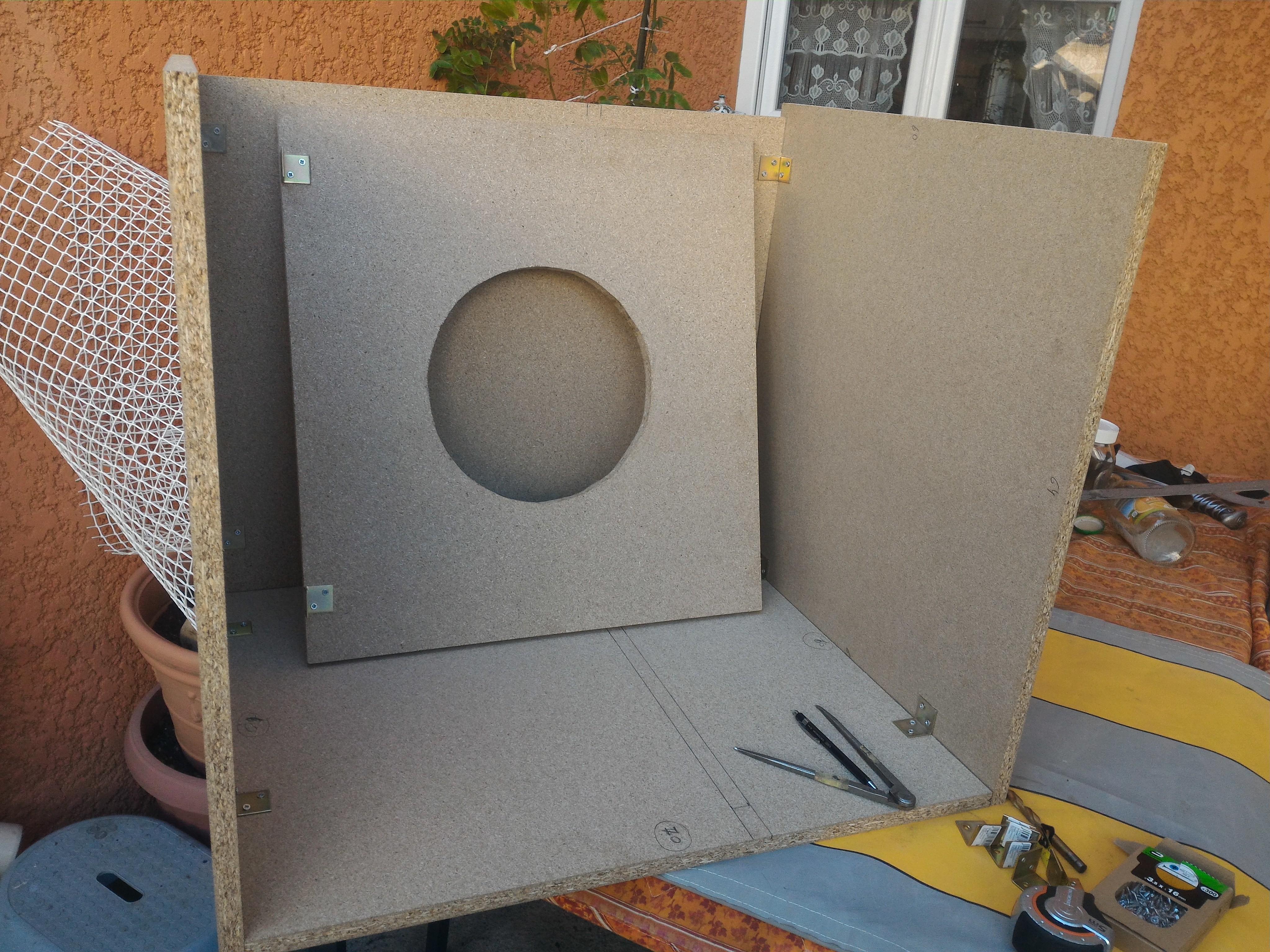 Je vais maintenant attaquer le trou pour le HP. Je vais pratiquer un trou de diamètre 27 cm dans un premier temps, et s'il faut affiner par la suite, je le ferai.