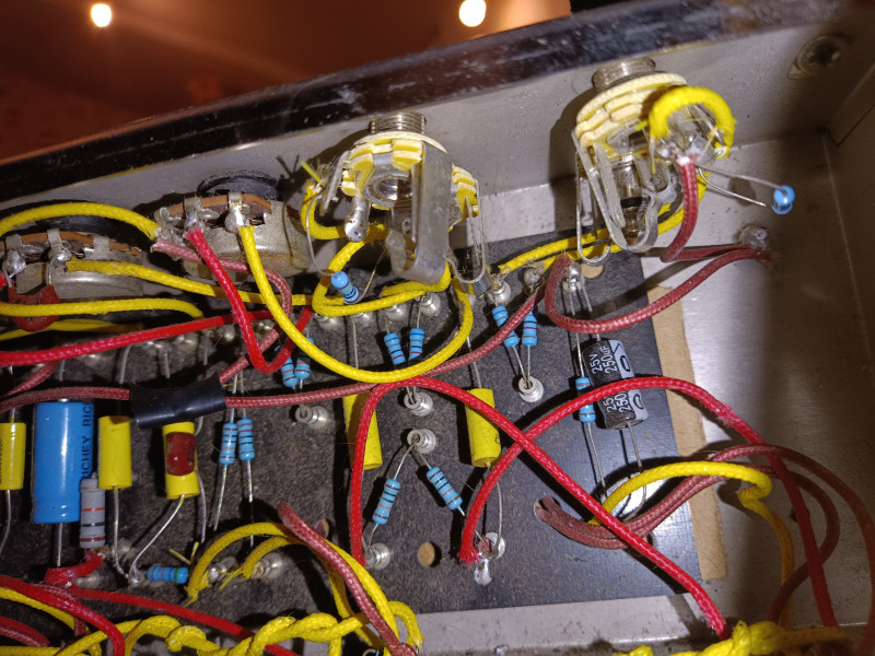 les jacks au niveau des inputs ne sont pas plaqué au chassis donc pas de contact et si ta des mises a la masse de ce coté la ca ne risque pas de fonctionner, normalement on grate style au papier a poncer pour avoir un bon contact par exemple , ta de la chance mr watson c est visiblement oldamp qui est expert en fender lui en 2 minutes il te trouve le souci avec lampli devant ^^, moi j ai pas l habitude des fender mais je sais que certain on des mise a la masse au niveau des potentiometre et compagnie donc reverifie tout tranquilement a tete reposé avec un multimetre evidement non branché au secteur tu par du debut style les inputs et tu mesure tout ce qui est mesurable et a defaut les continuitées tu stabilotte ton plan a chaque verification quand c est ok est a force tu vas comprendre ton ou tes erreurs ya pas 400 facon de faire a mon avis mais attends les conseils du patron ^^