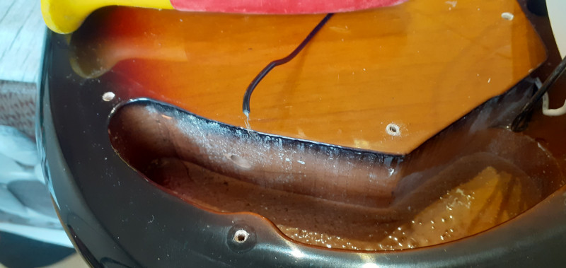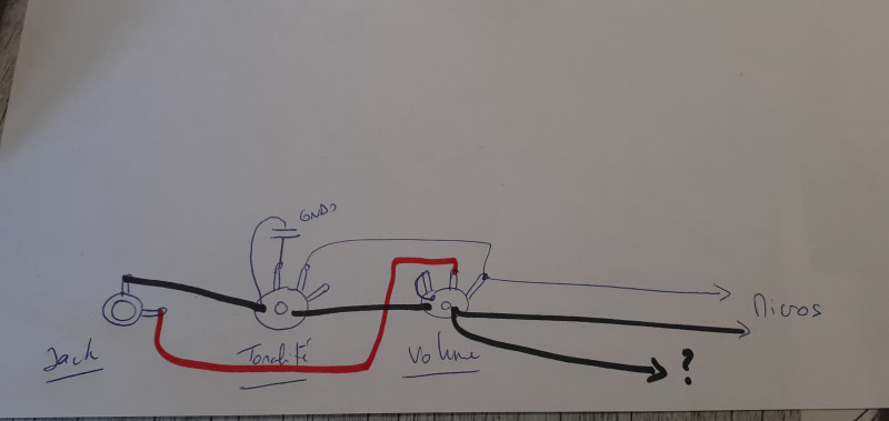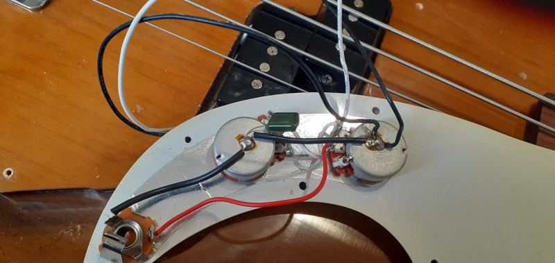Je teste mes potards à l'ohmètre, mes valeurs bougent, en tirant un peu surles fils noirs pour vérifier les soudures non visibles (sous les micros par exemple, je me retrouve avec un fil de masse rentrant dans un perçage du corps en bois, ( à l'aplomb de l'entrée jack), il vient mollement paraissant être arraché, ou déssoudé. Il va où ce fil noir ?? Apparemment masse principale ? SOus le chevalet ? J'ai pas osé démonter le chevalet de peur d'être tout con, mais est-ce la solution ? Merci à vous tous