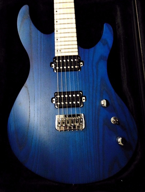 Je suis actuellement en train de me fabriquer une guitare électrique et j'arrive au moment de la finition de la guitare. Je cherche à avoir une teinture bleue (plutôt foncé) mais qui laisse apparaître les veinures naturelles du bois (du frêne). Voici quelques photos de ce que je cherche à obtenir. J’ai déjà fait quelques recherches mais je souhaiterai vérifier si ce que je prévois de faire est correct car je n’ai pas trouvé exactement ce que je cherchais.
